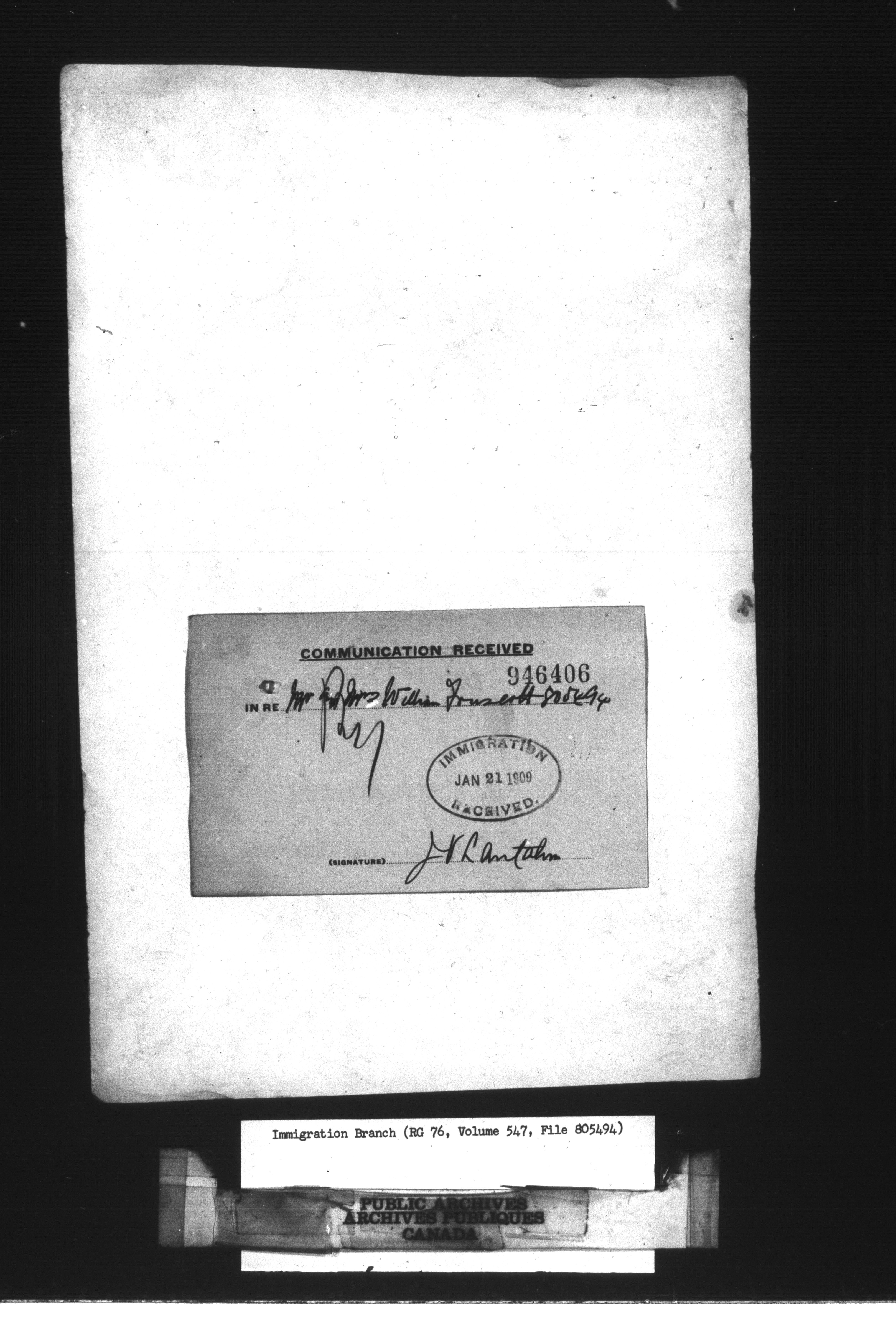 Subject, policy and case files in the First Central Registry series of the Immigration Program, 1892-1950 - 10633