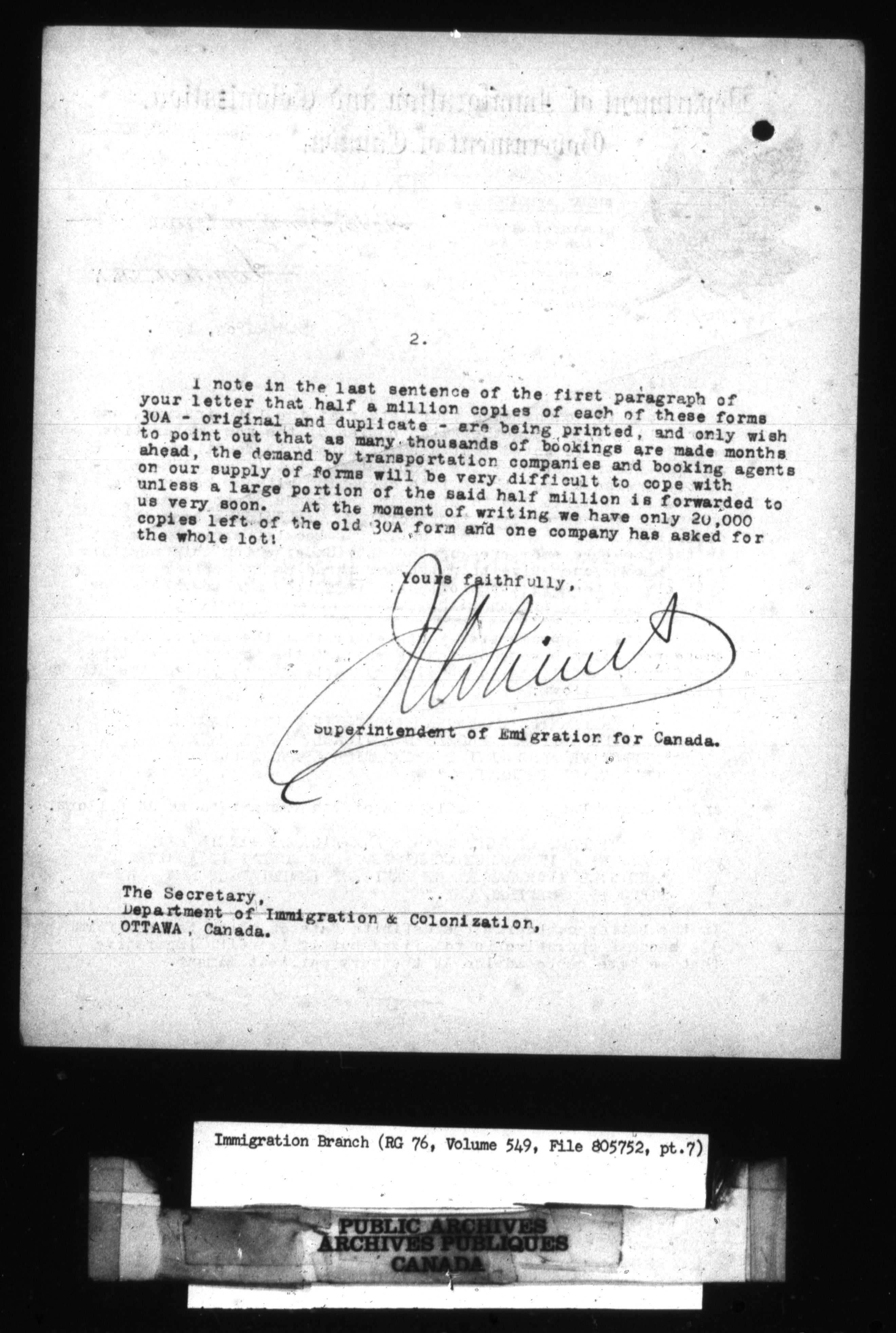 Subject, policy and case files in the First Central Registry series of the Immigration Program, 1892-1950 - 10634