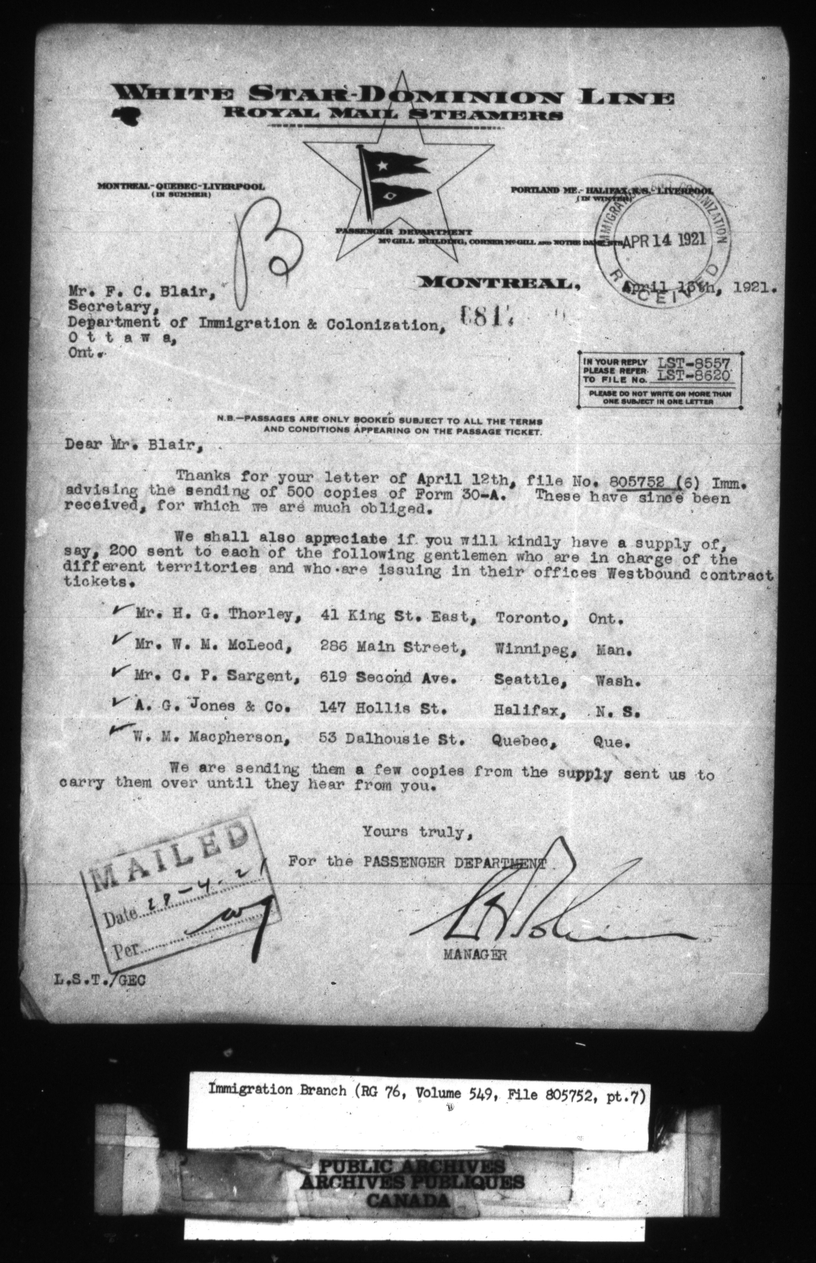 Subject, policy and case files in the First Central Registry series of the Immigration Program, 1892-1950 - 10634