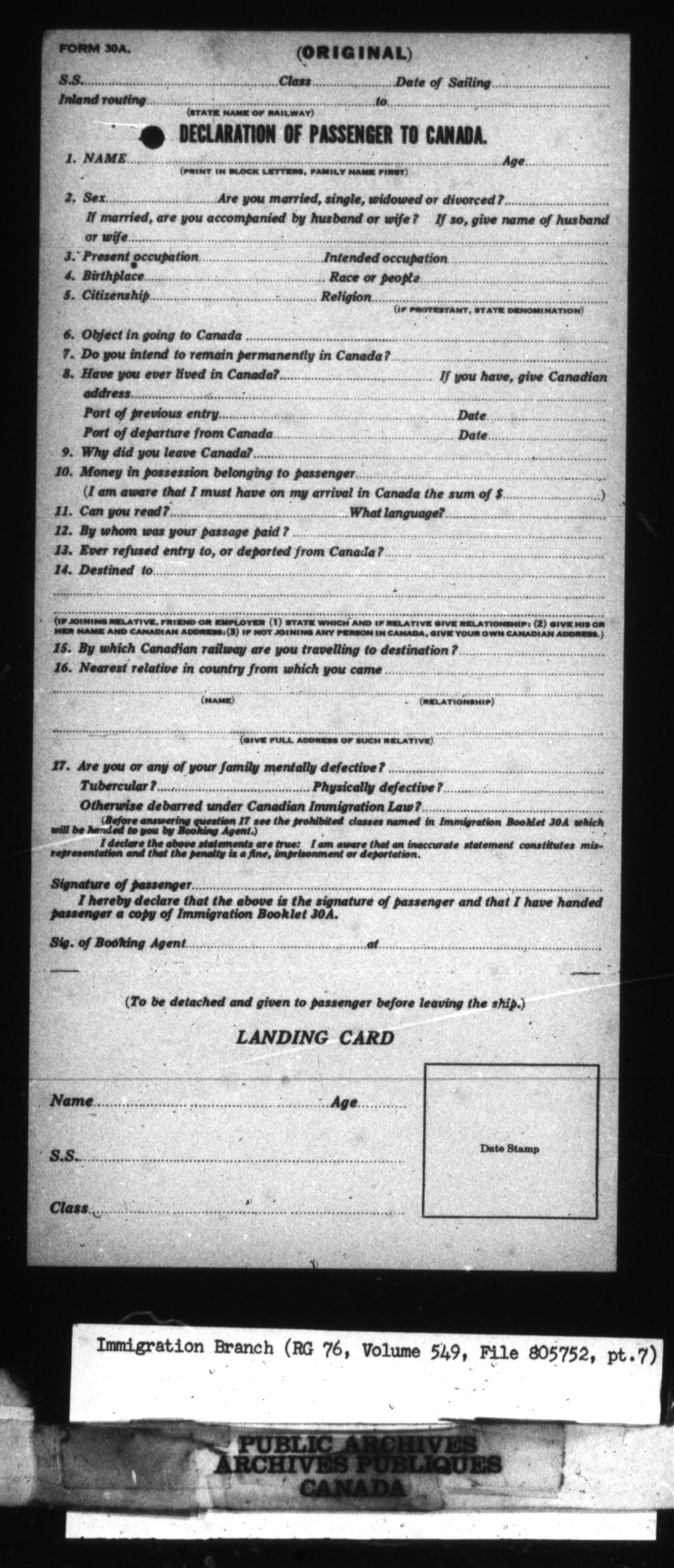 Subject, policy and case files in the First Central Registry series of the Immigration Program, 1892-1950 - 10634