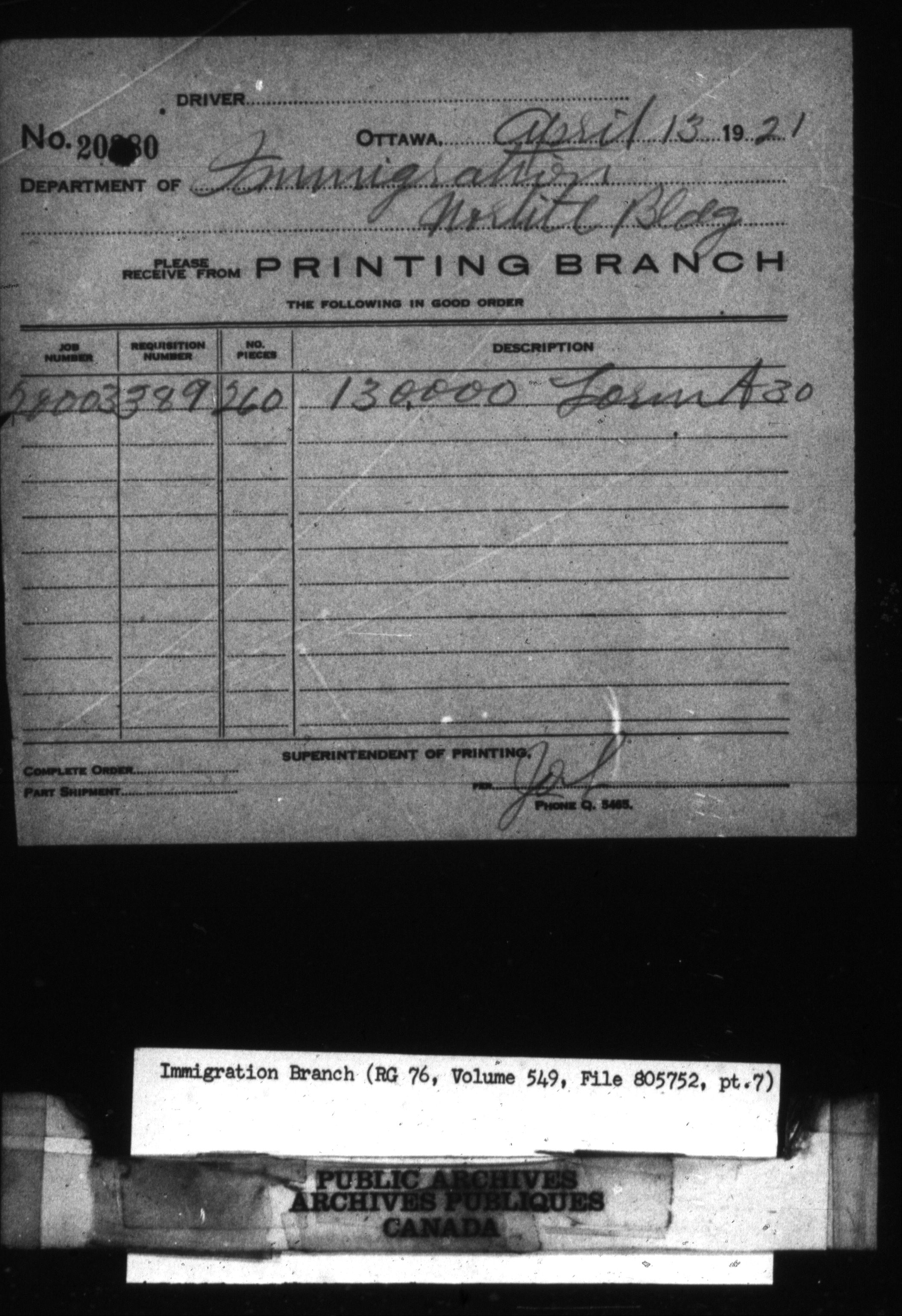 Subject, policy and case files in the First Central Registry series of the Immigration Program, 1892-1950 - 10634