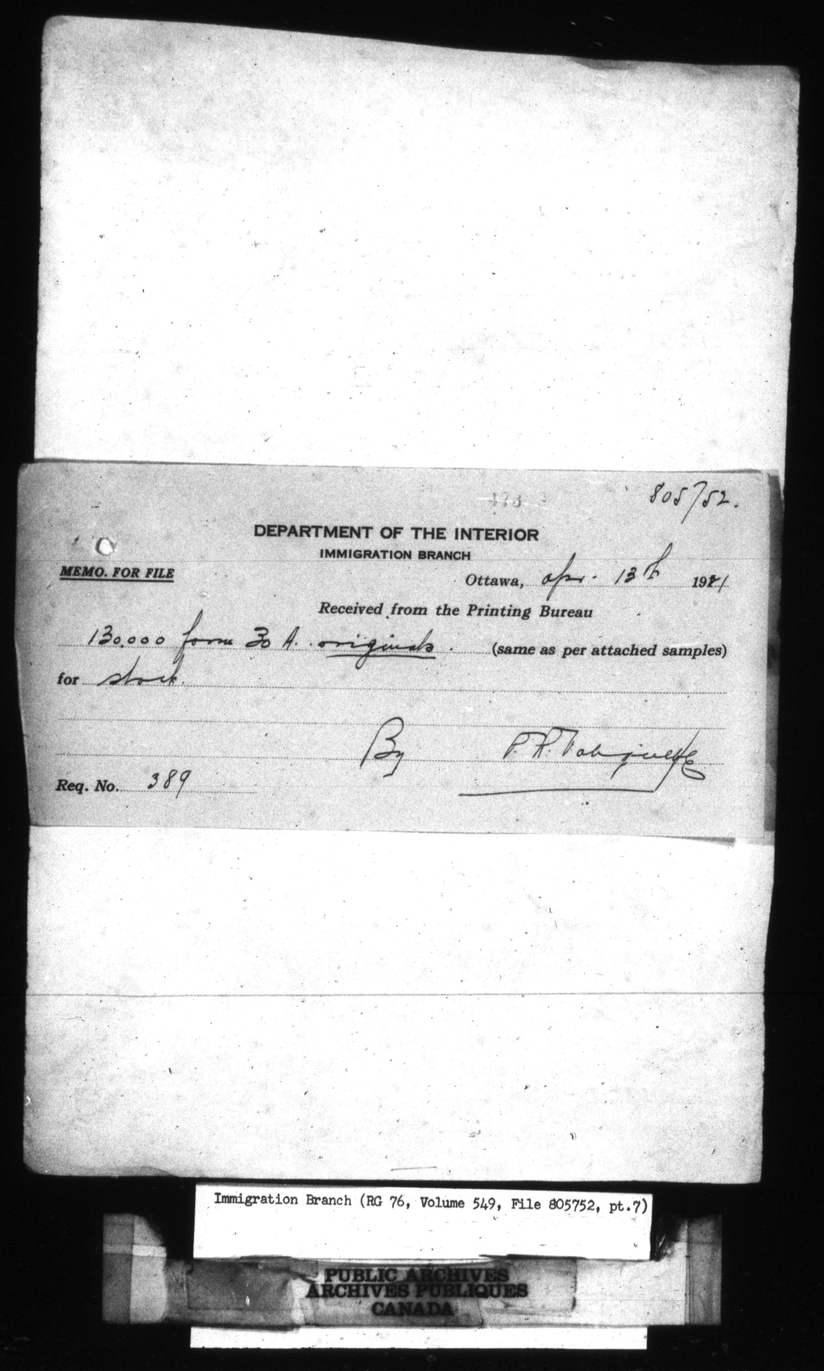 Subject, policy and case files in the First Central Registry series of the Immigration Program, 1892-1950 - 10634