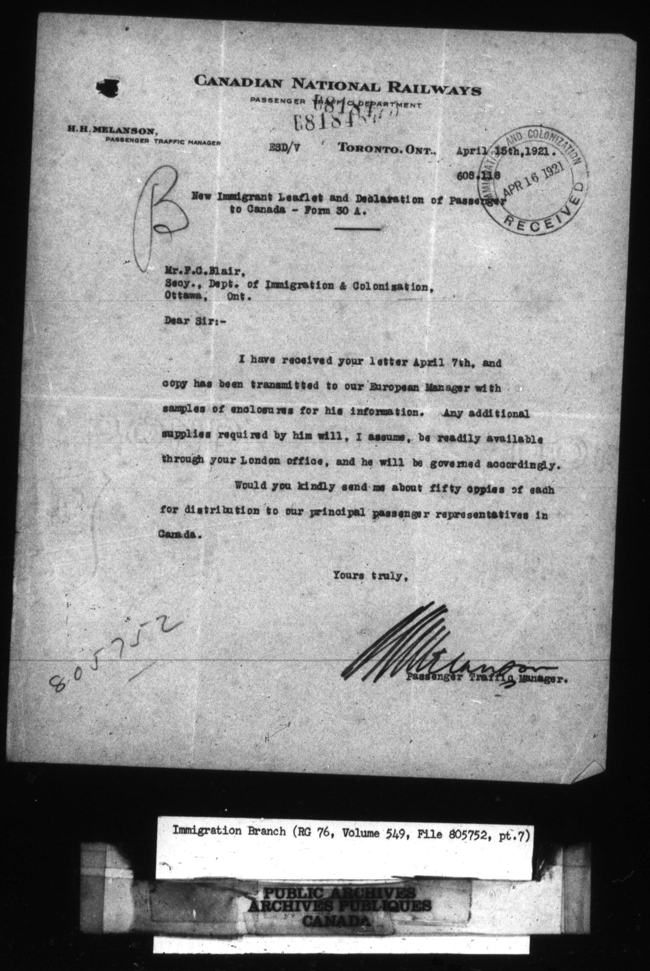 Subject, policy and case files in the First Central Registry series of the Immigration Program, 1892-1950 - 10634