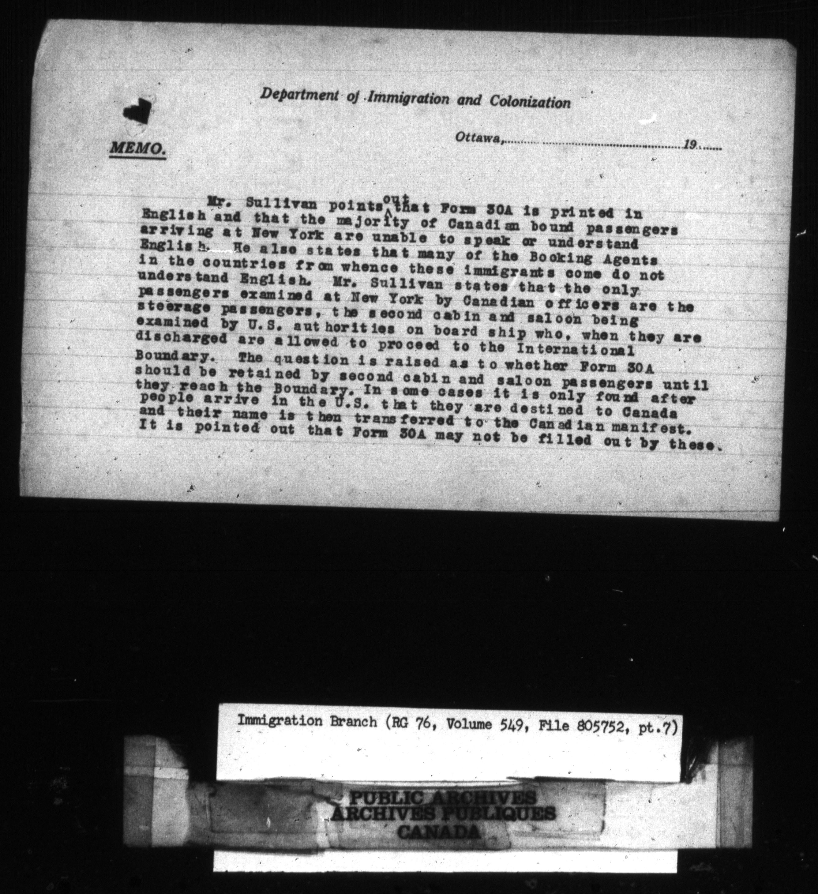 Subject, policy and case files in the First Central Registry series of the Immigration Program, 1892-1950 - 10634