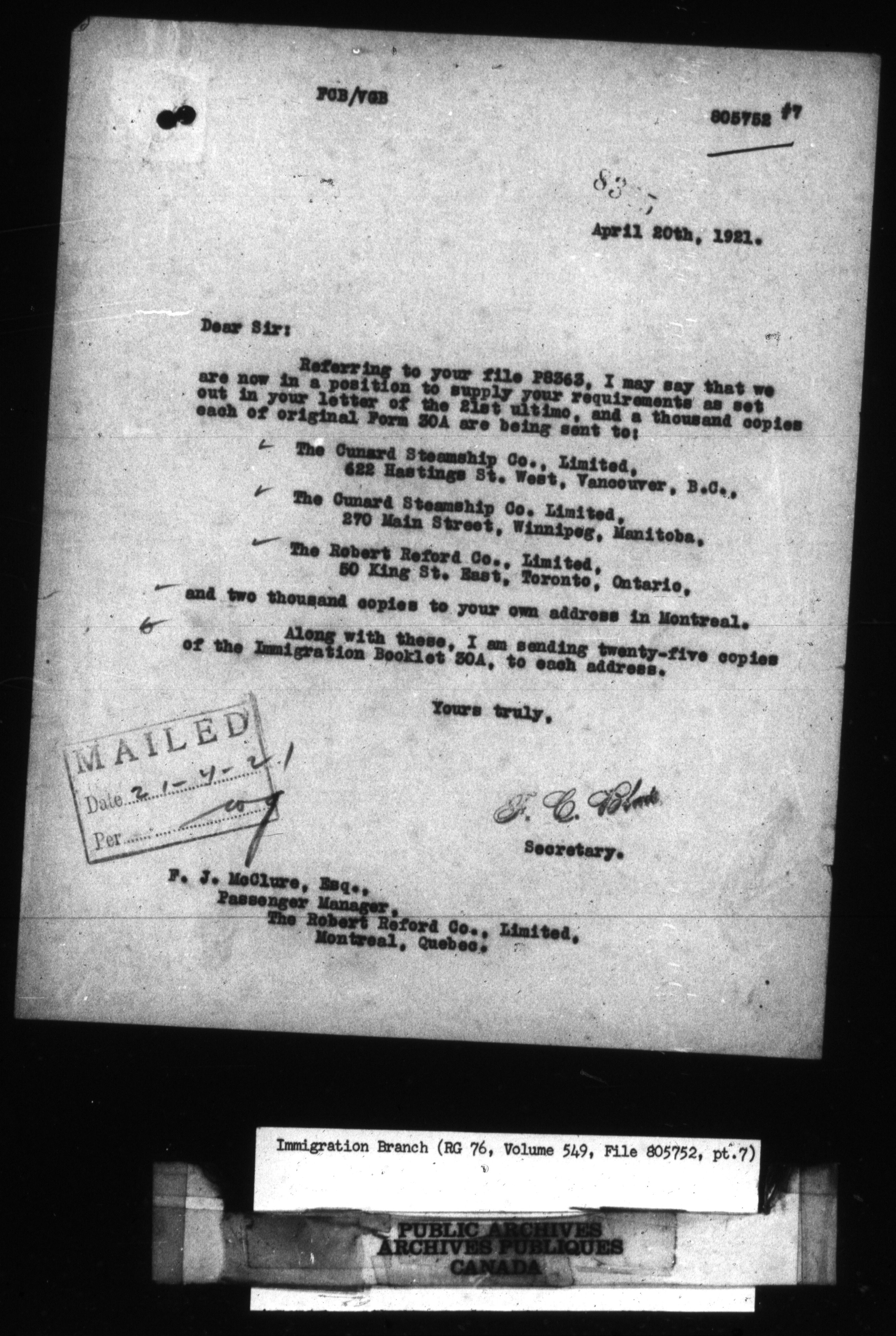 Subject, policy and case files in the First Central Registry series of the Immigration Program, 1892-1950 - 10634