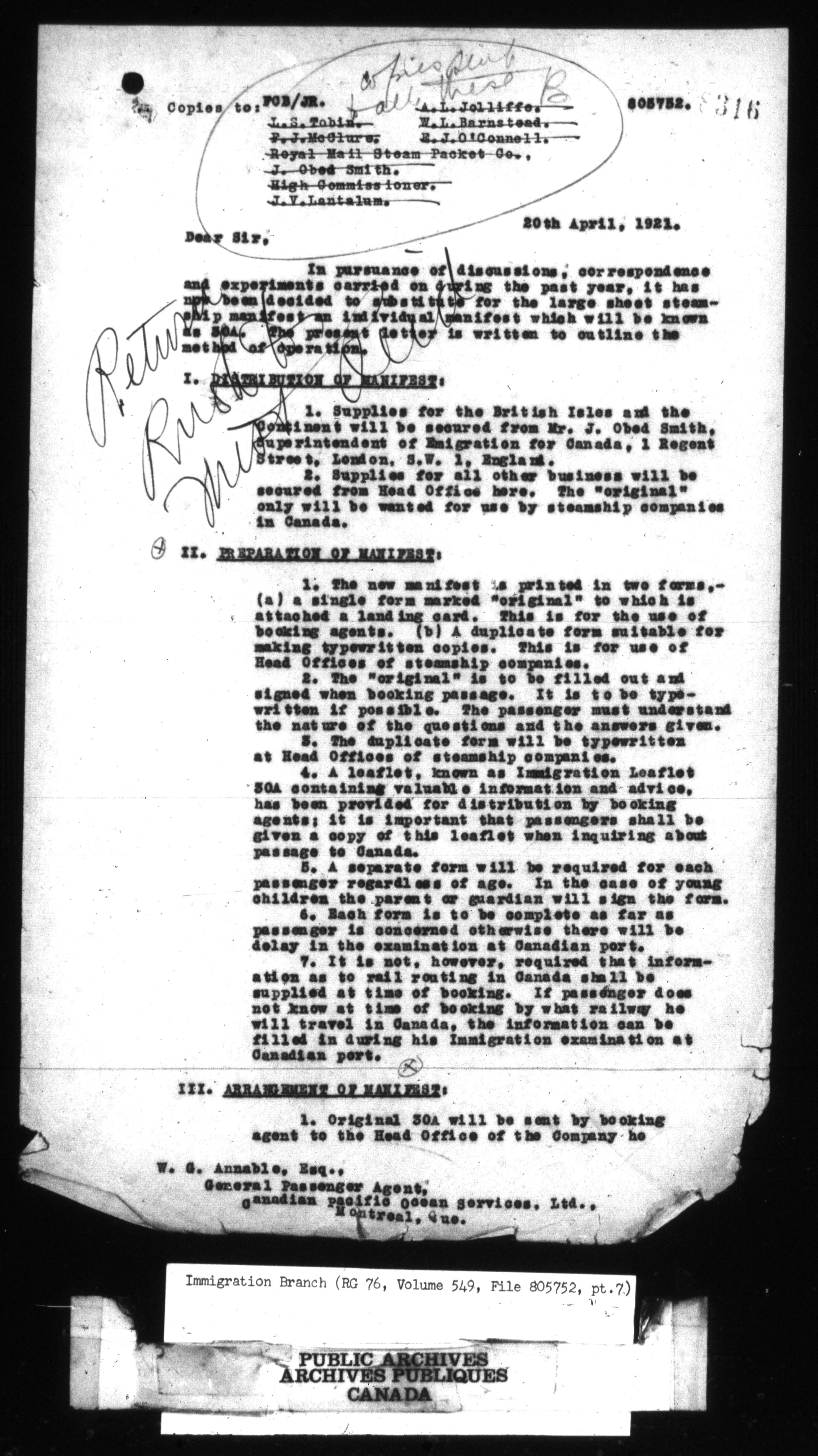 Subject, policy and case files in the First Central Registry series of the Immigration Program, 1892-1950 - 10634