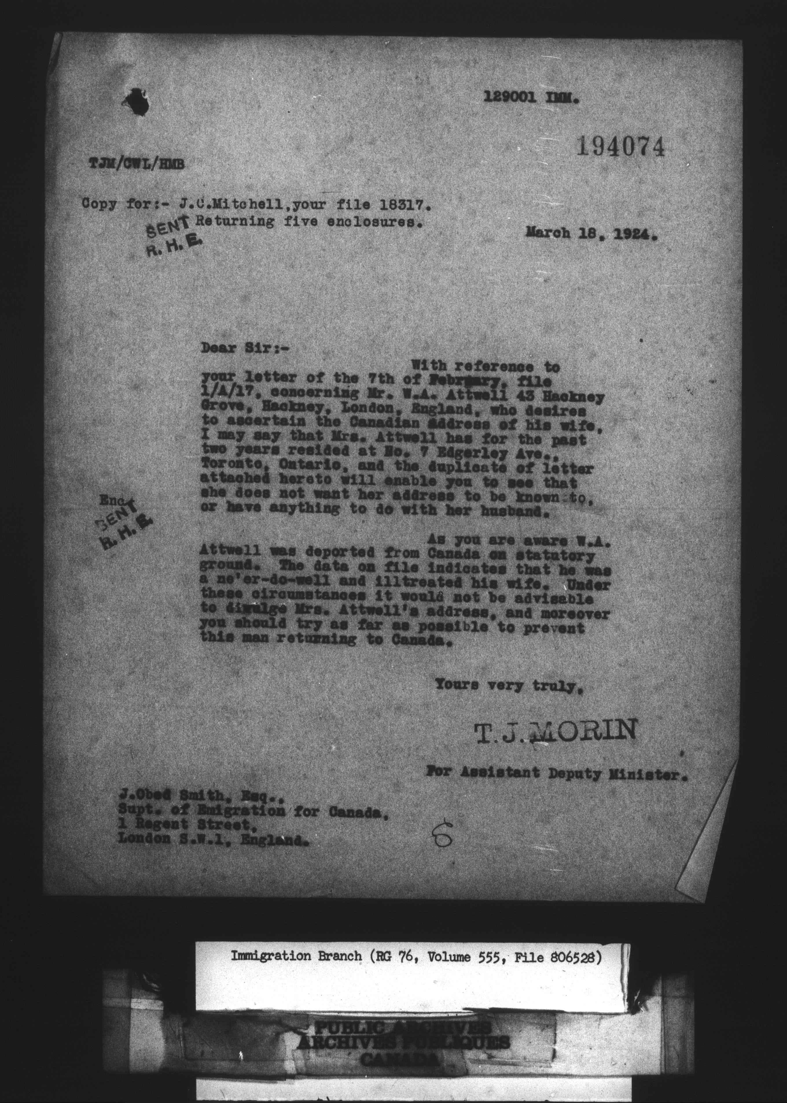 Subject, policy and case files in the First Central Registry series of the Immigration Program, 1892-1950 - 10638