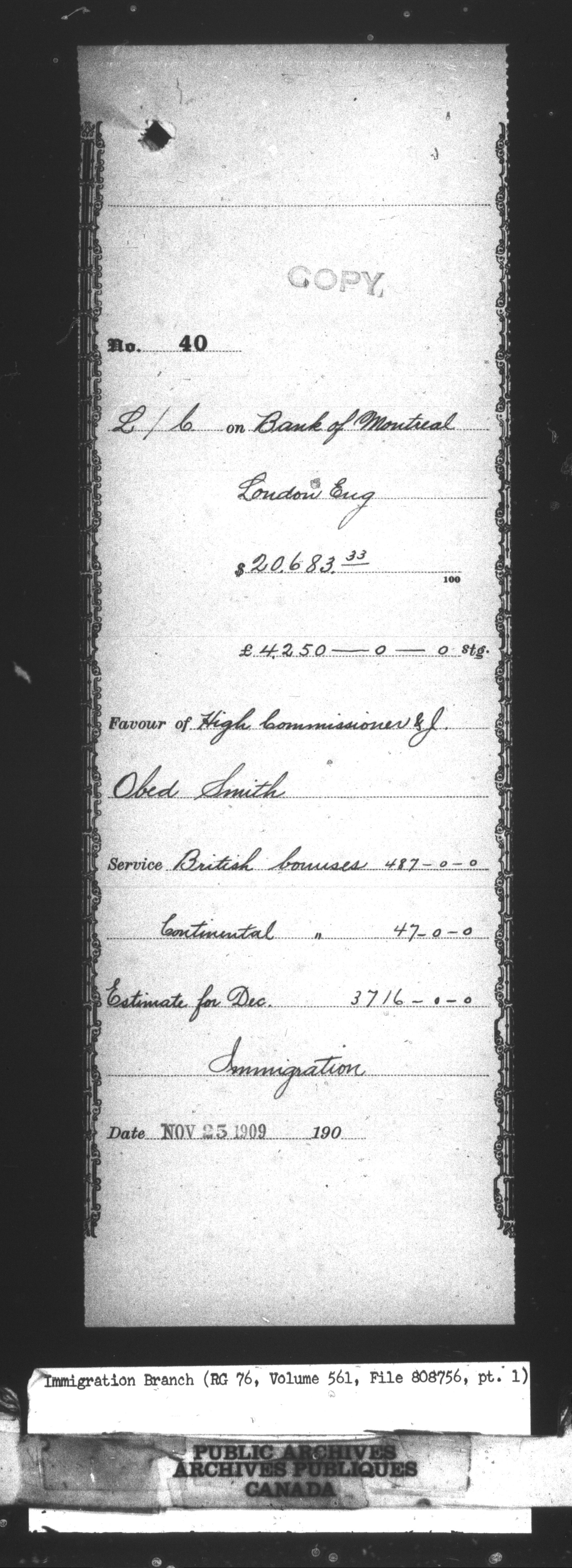 Subject, policy and case files in the First Central Registry series of the Immigration Program, 1892-1950 - 10642