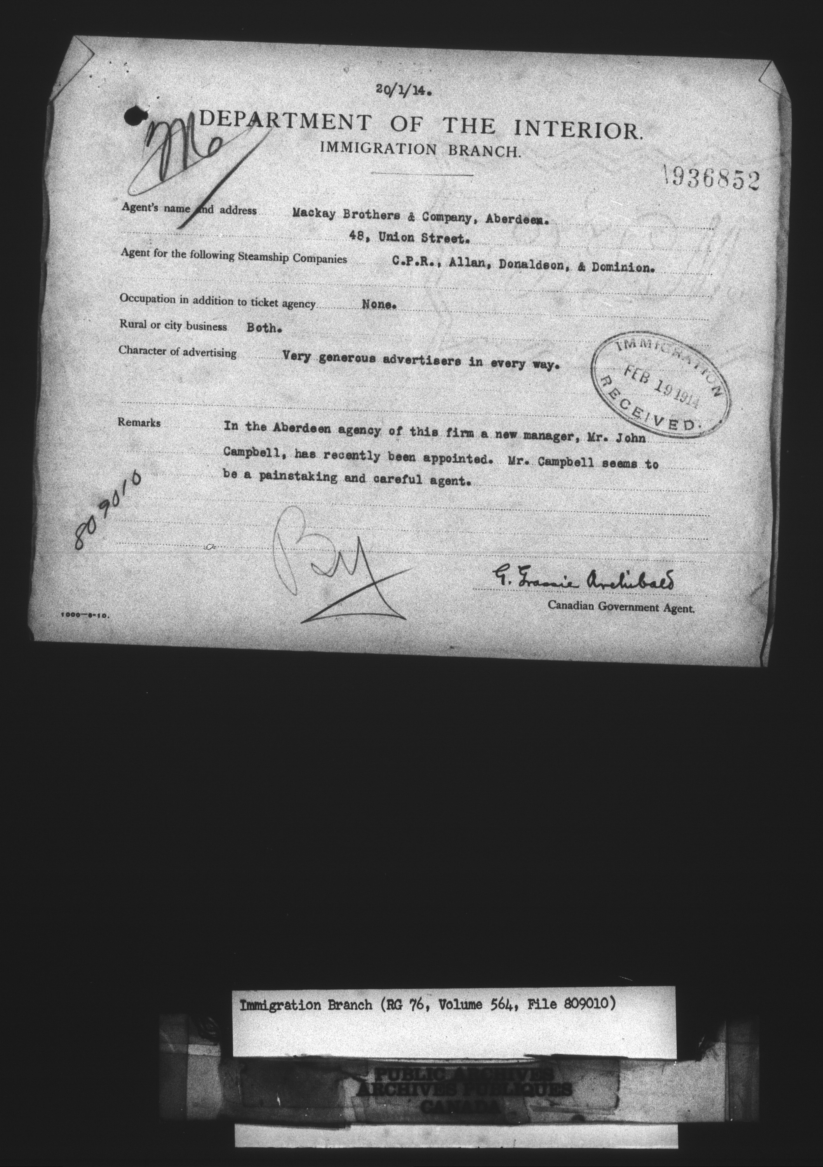 Subject, policy and case files in the First Central Registry series of the Immigration Program, 1892-1950 - 10644