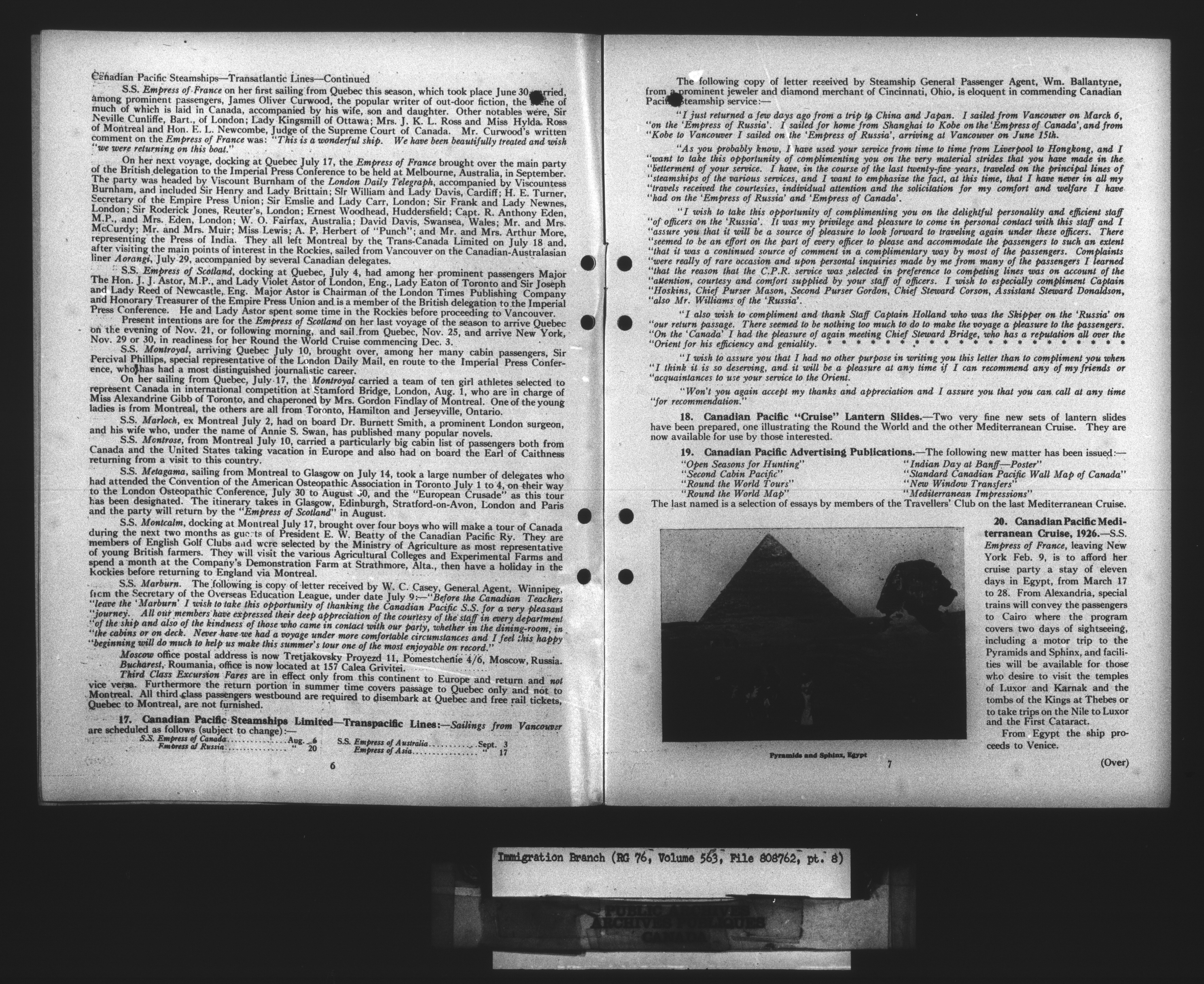 Subject, policy and case files in the First Central Registry series of the Immigration Program, 1892-1950 - 10644