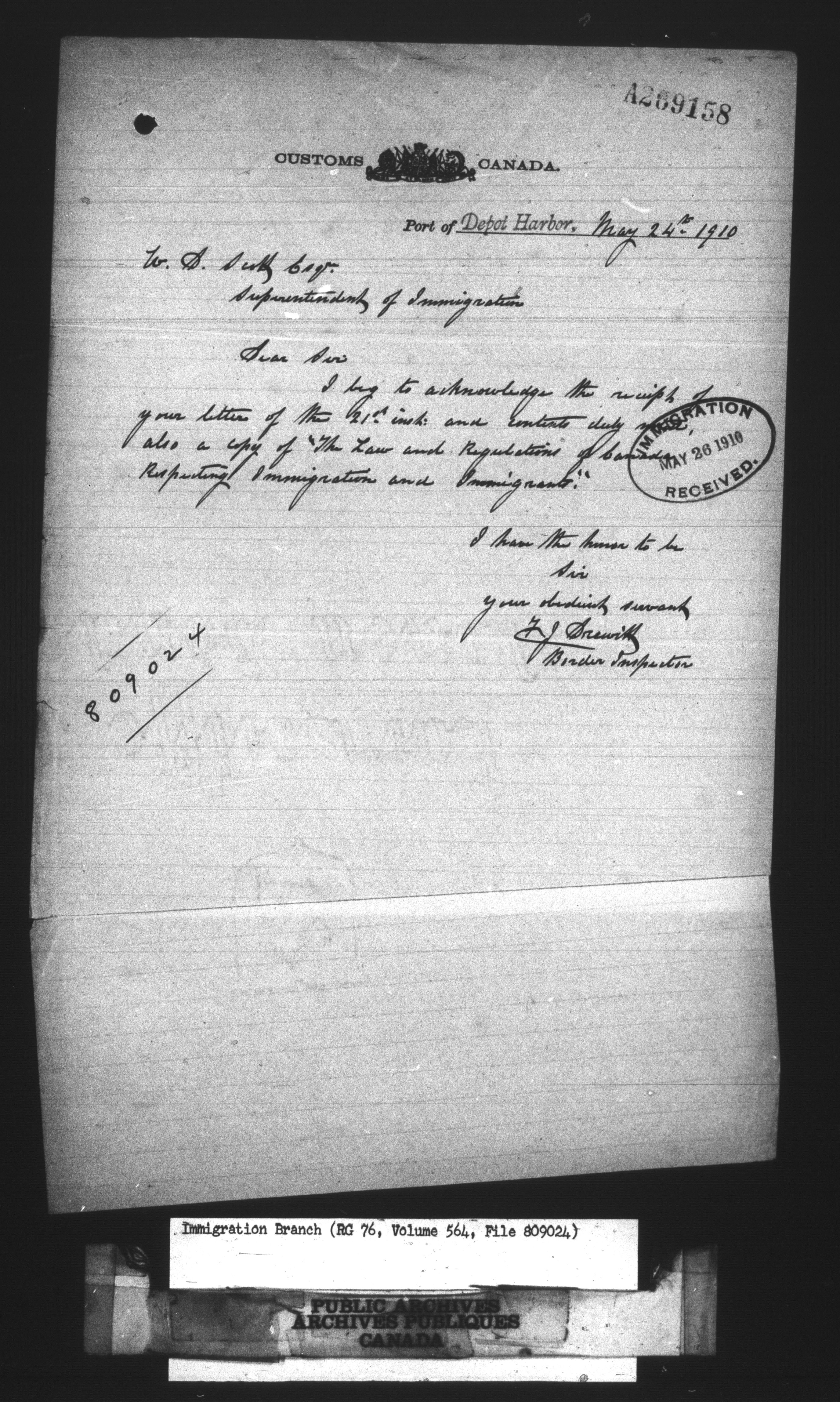 Subject, policy and case files in the First Central Registry series of the Immigration Program, 1892-1950 - 10645
