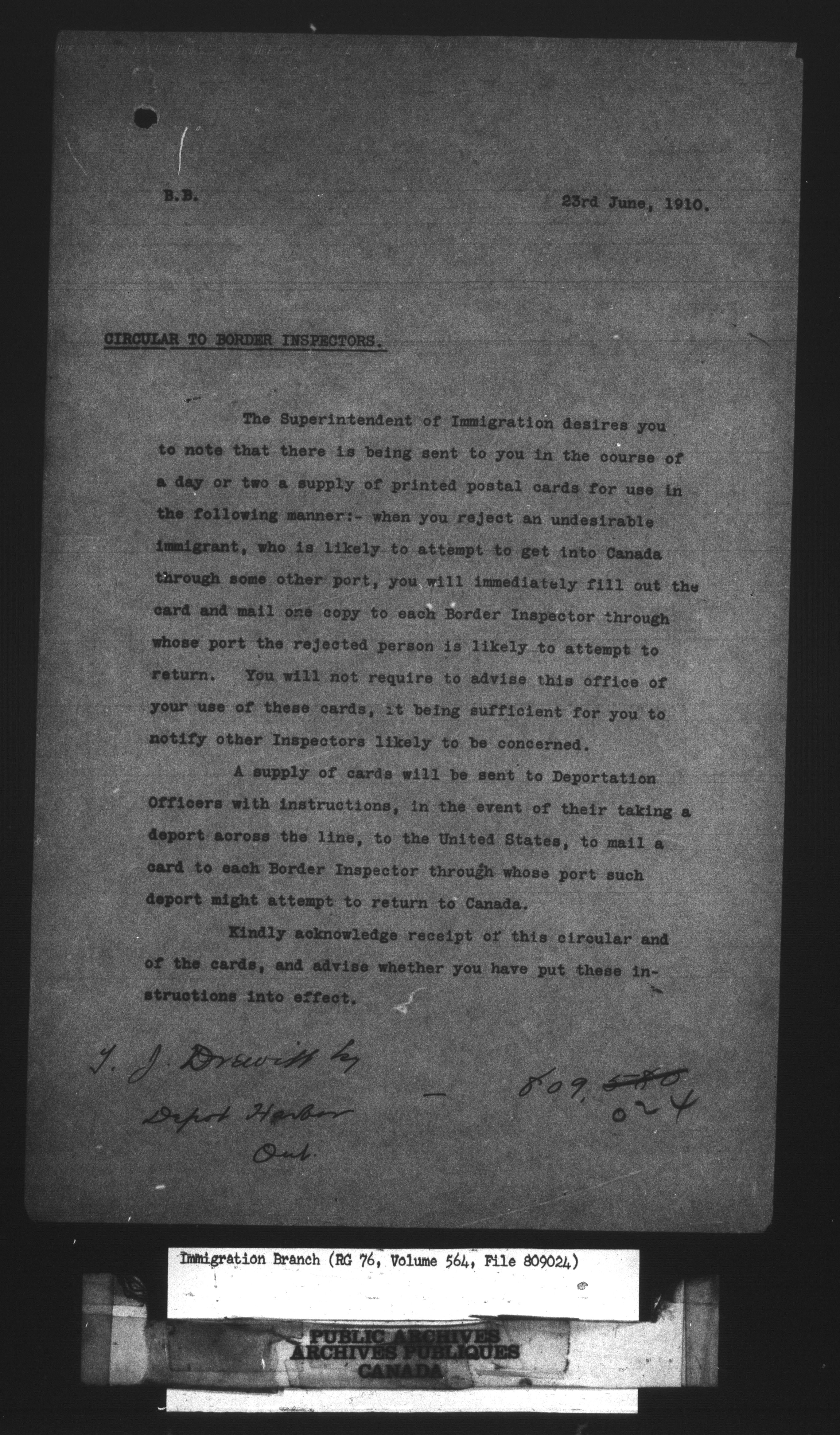 Subject, policy and case files in the First Central Registry series of the Immigration Program, 1892-1950 - 10645