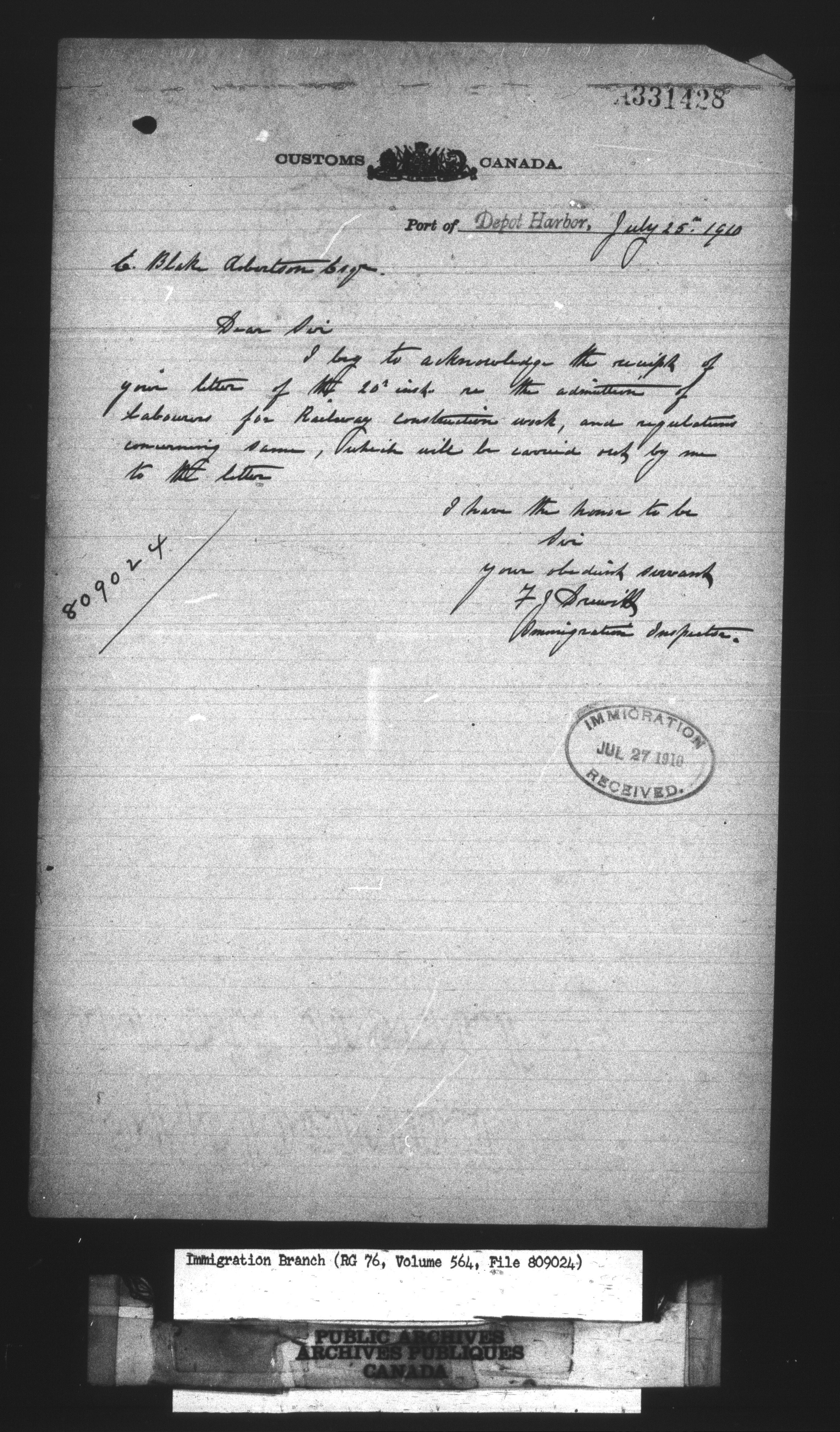 Subject, policy and case files in the First Central Registry series of the Immigration Program, 1892-1950 - 10645