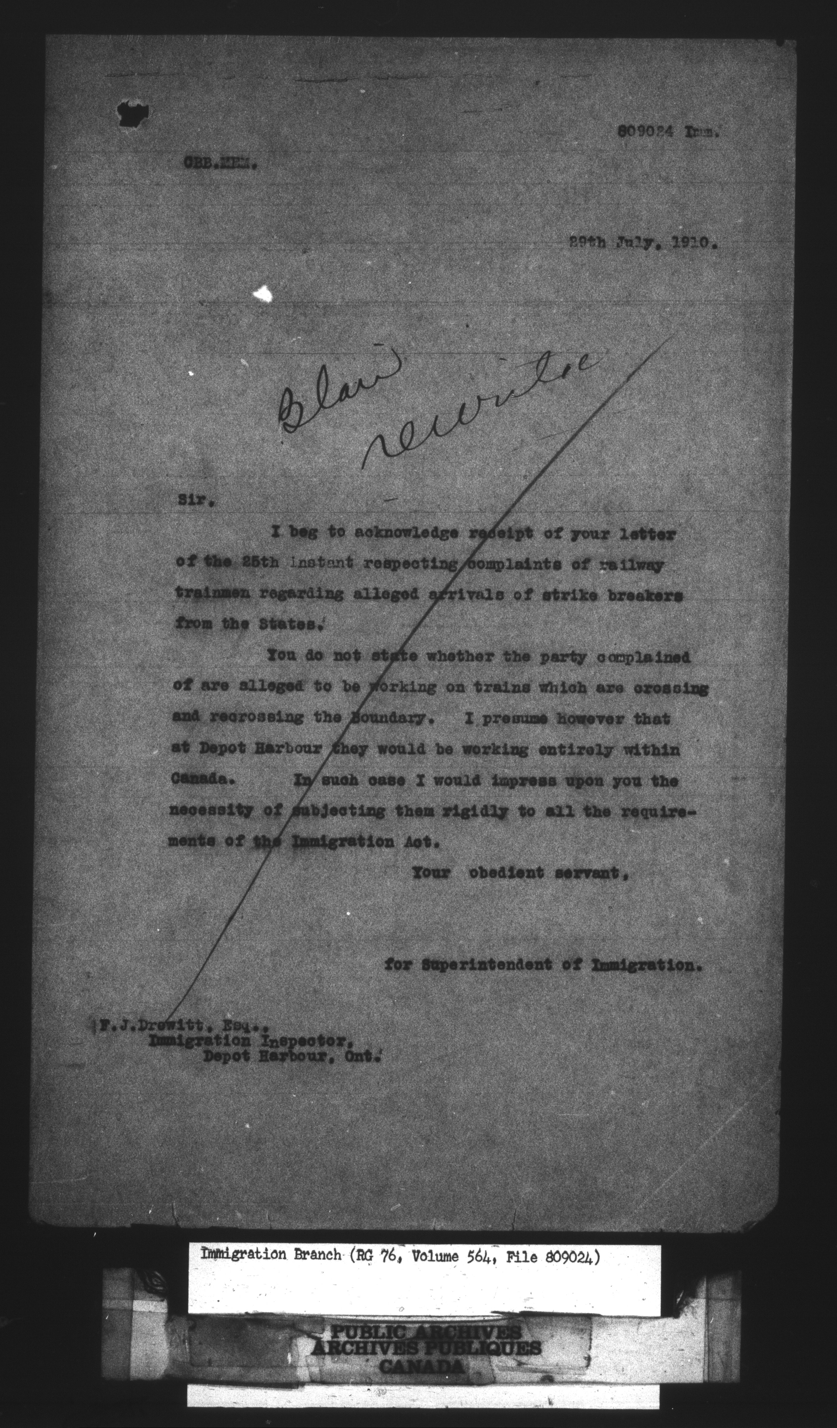 Subject, policy and case files in the First Central Registry series of the Immigration Program, 1892-1950 - 10645