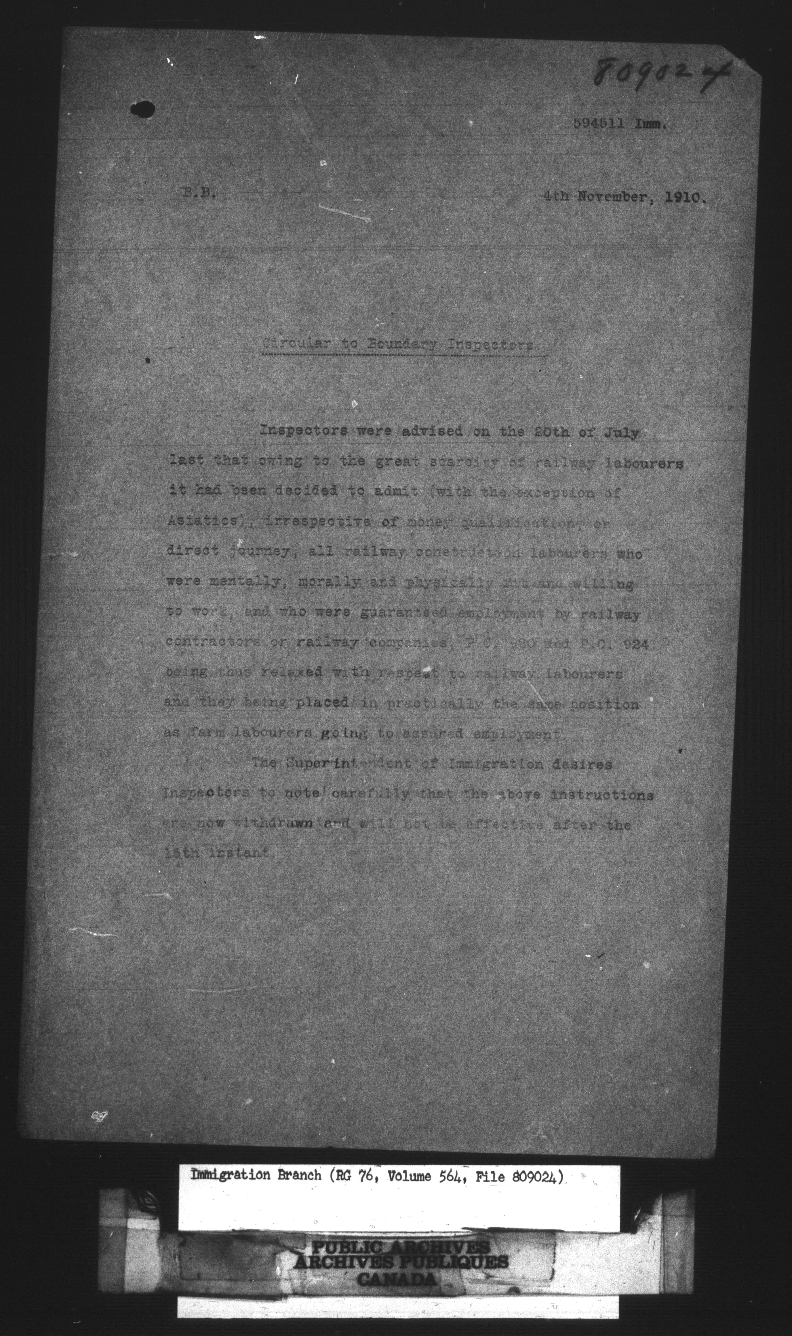 Subject, policy and case files in the First Central Registry series of the Immigration Program, 1892-1950 - 10645