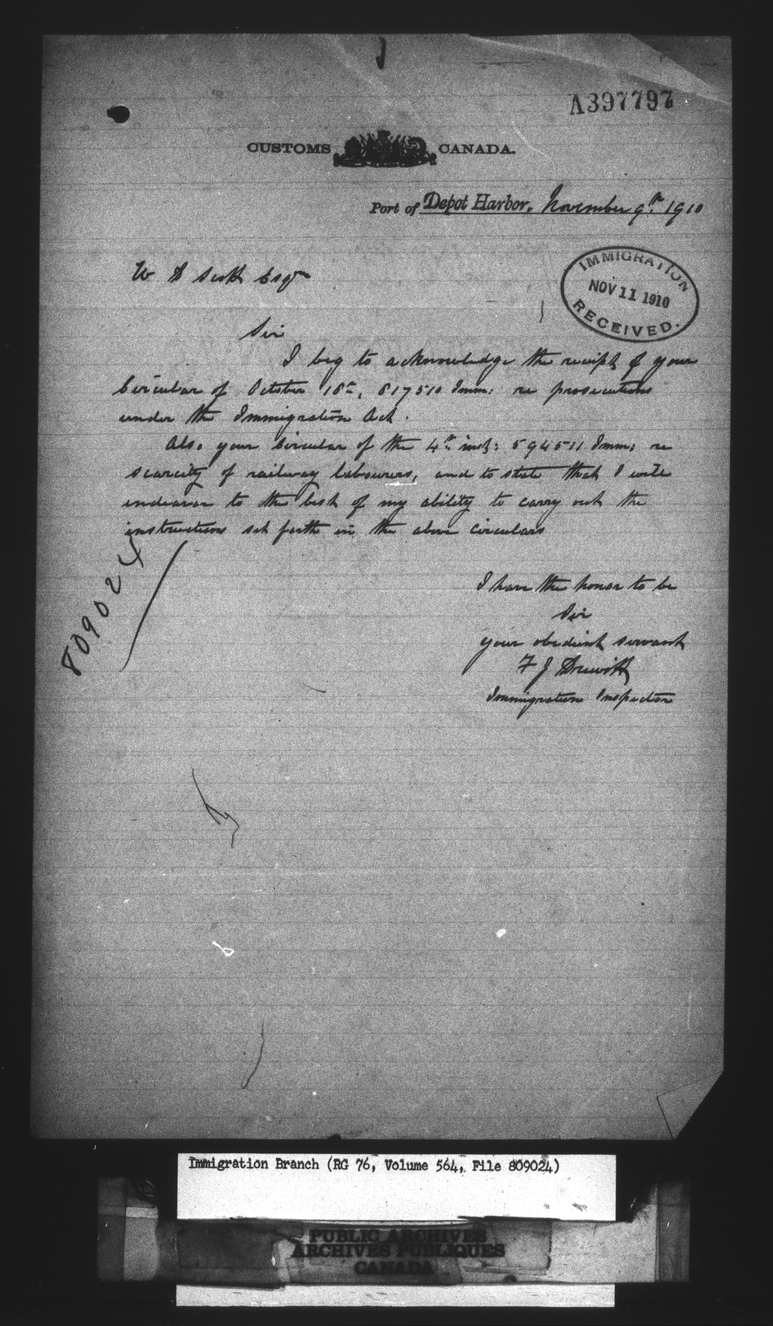 Subject, policy and case files in the First Central Registry series of the Immigration Program, 1892-1950 - 10645