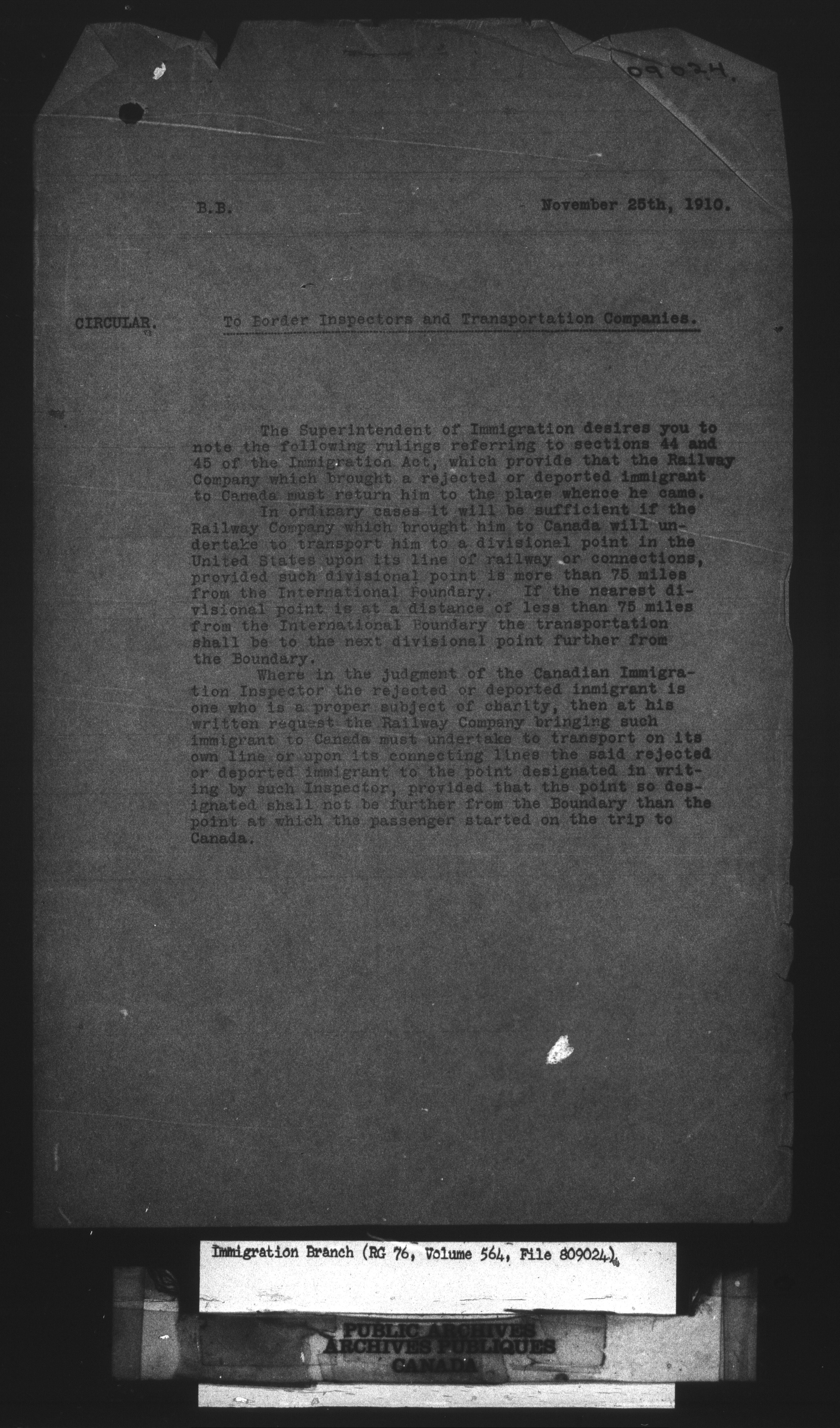 Subject, policy and case files in the First Central Registry series of the Immigration Program, 1892-1950 - 10645
