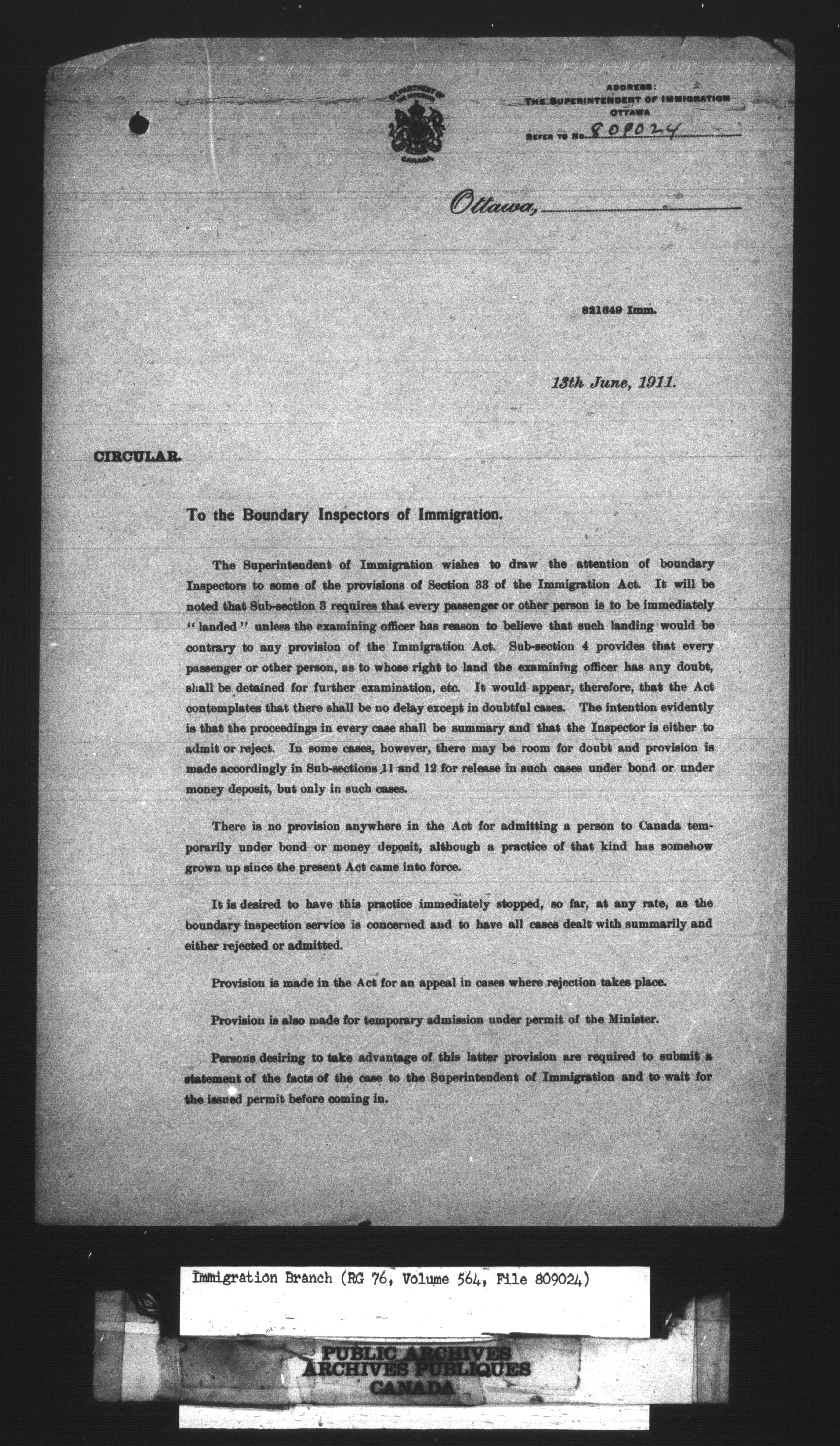 Subject, policy and case files in the First Central Registry series of the Immigration Program, 1892-1950 - 10645
