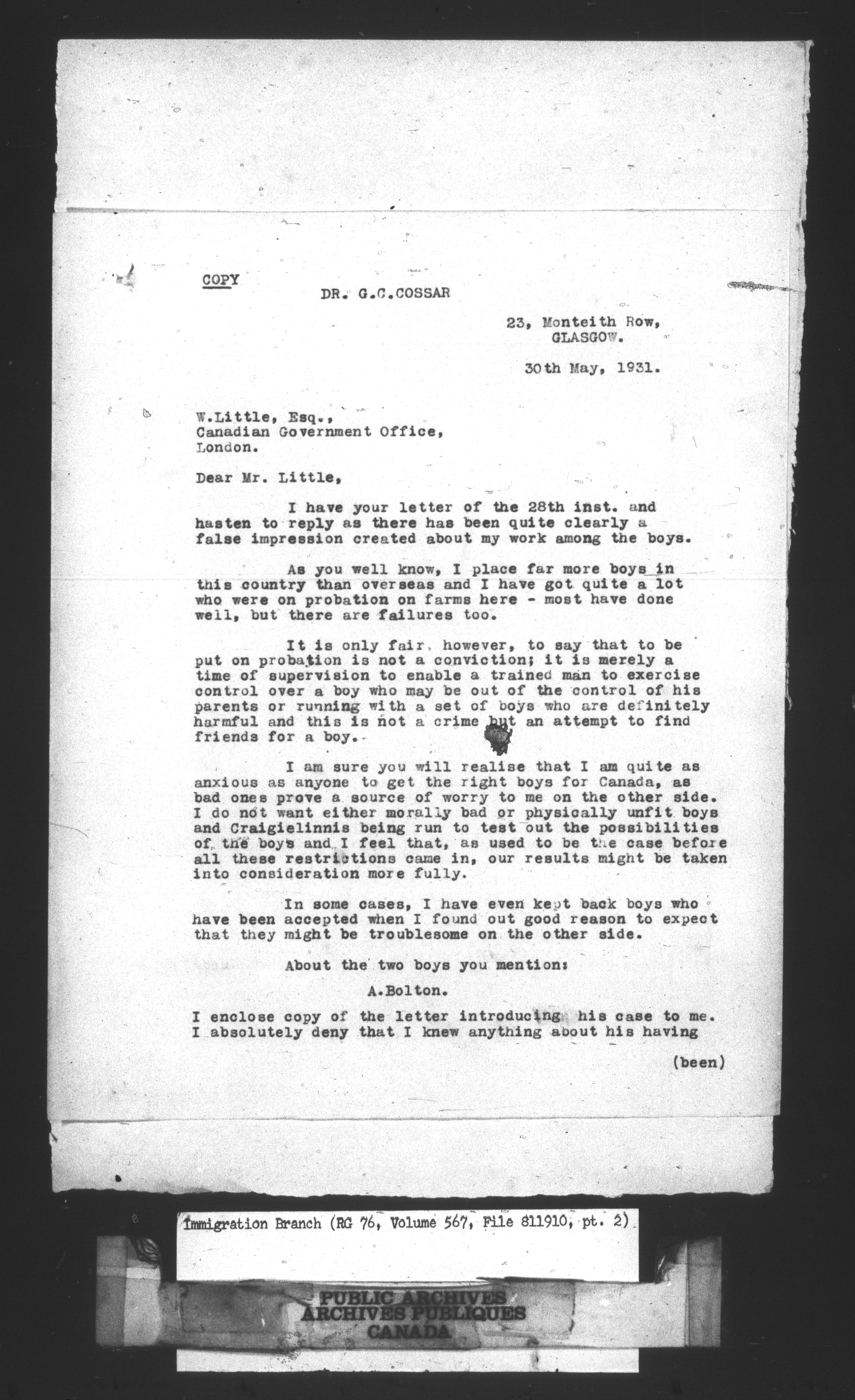 Subject, policy and case files in the First Central Registry series of the Immigration Program, 1892-1950 - 10646