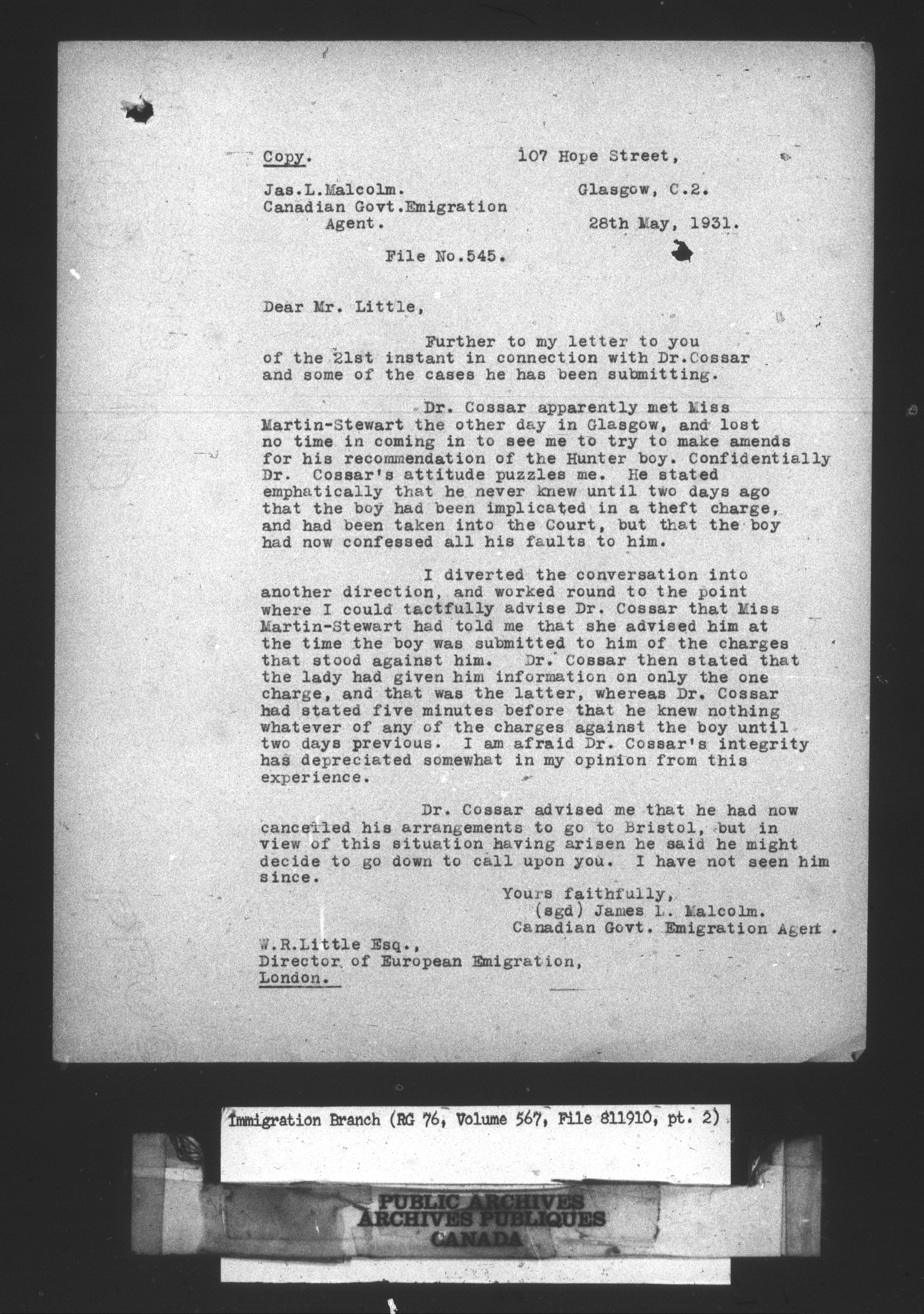 Subject, policy and case files in the First Central Registry series of the Immigration Program, 1892-1950 - 10646