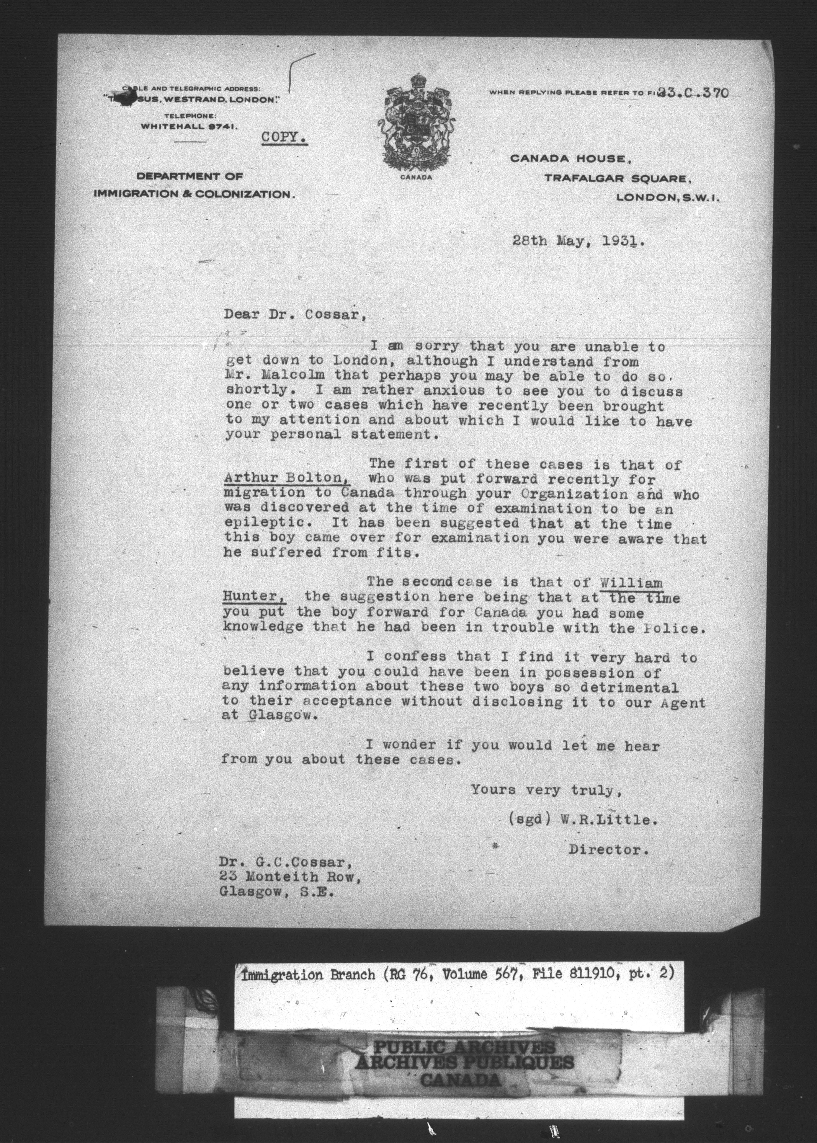 Subject, policy and case files in the First Central Registry series of the Immigration Program, 1892-1950 - 10646