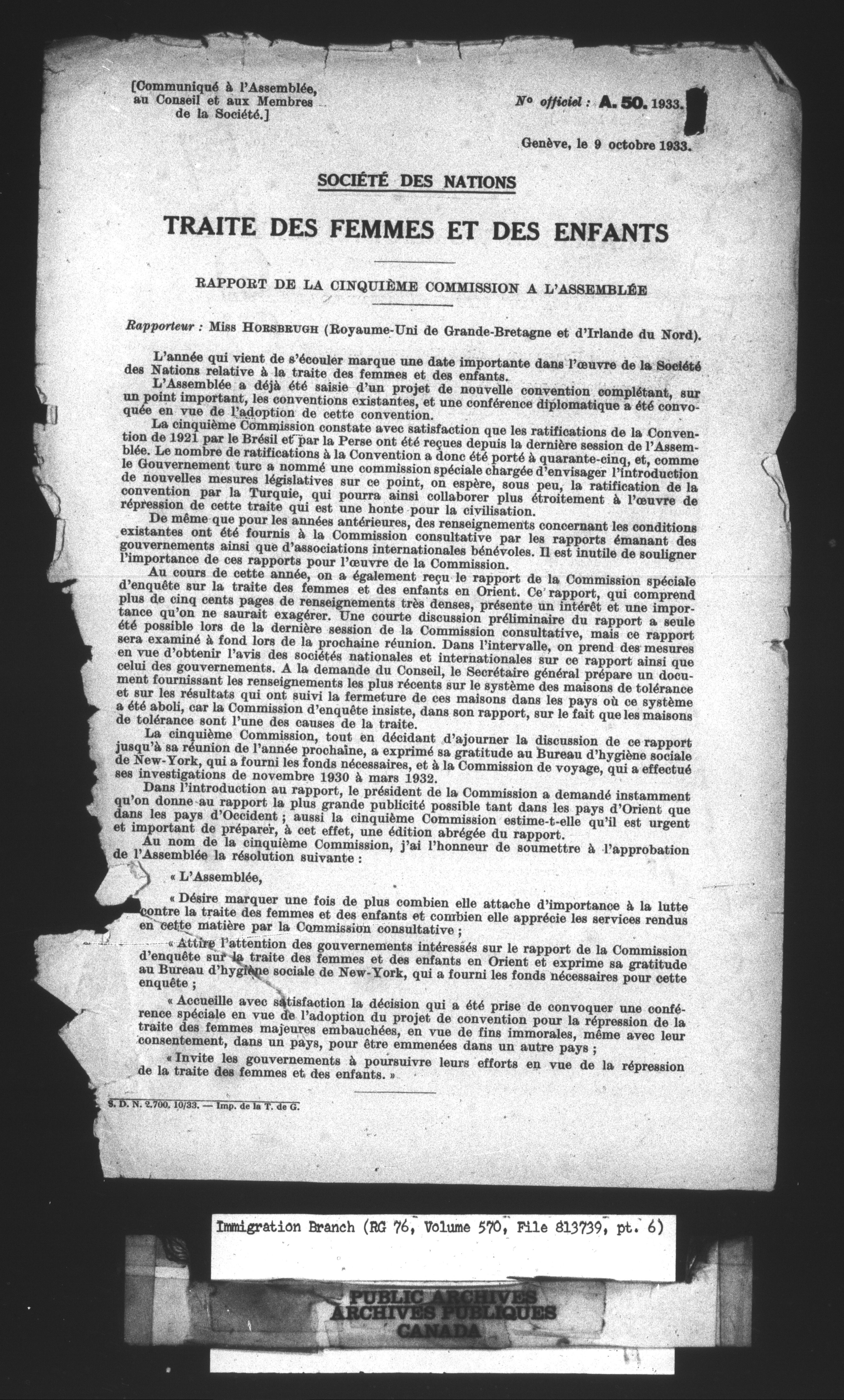 Subject, policy and case files in the First Central Registry series of the Immigration Program, 1892-1950 - 10648