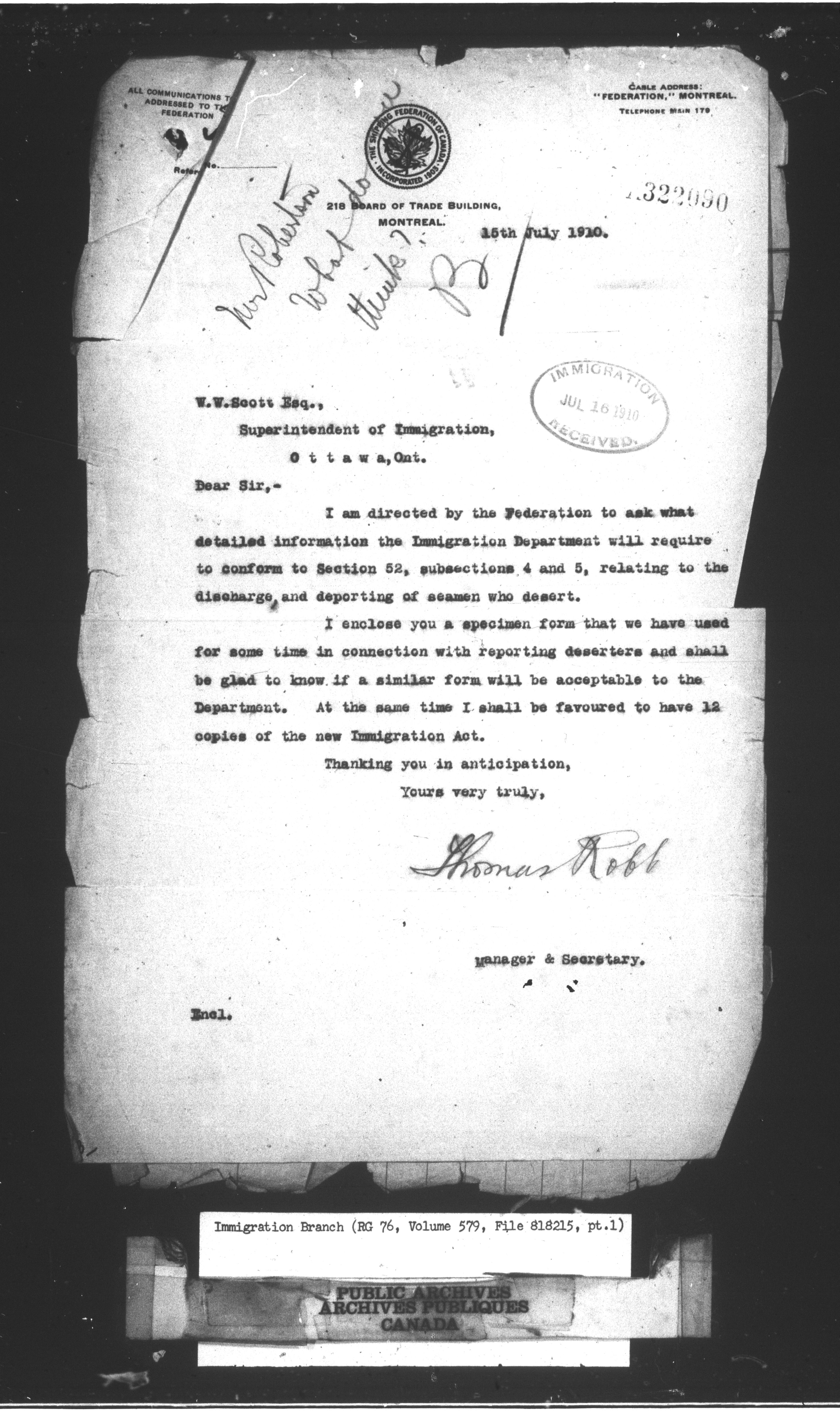 Subject, policy and case files in the First Central Registry series of the Immigration Program, 1892-1950 - 10654