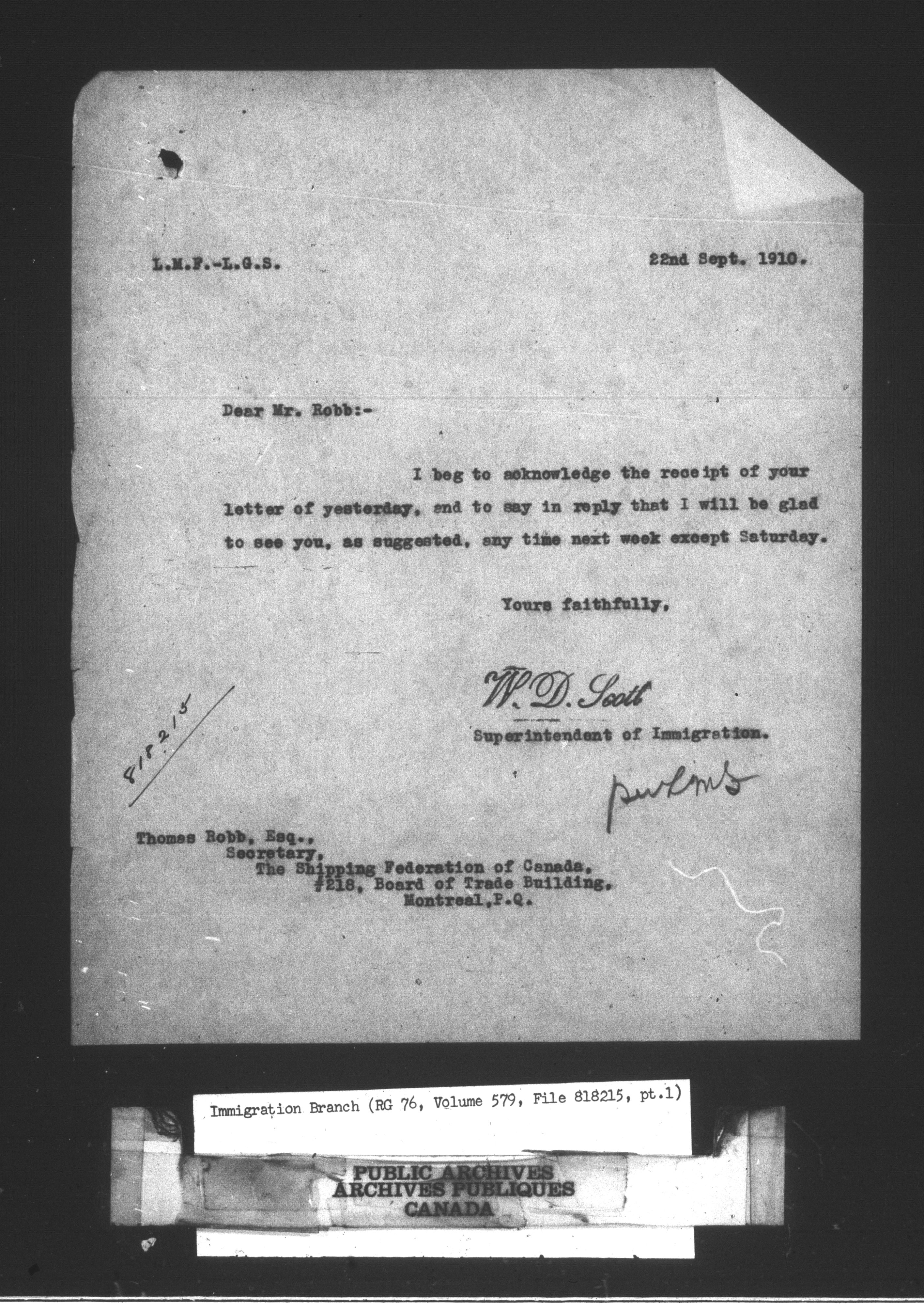 Subject, policy and case files in the First Central Registry series of the Immigration Program, 1892-1950 - 10654
