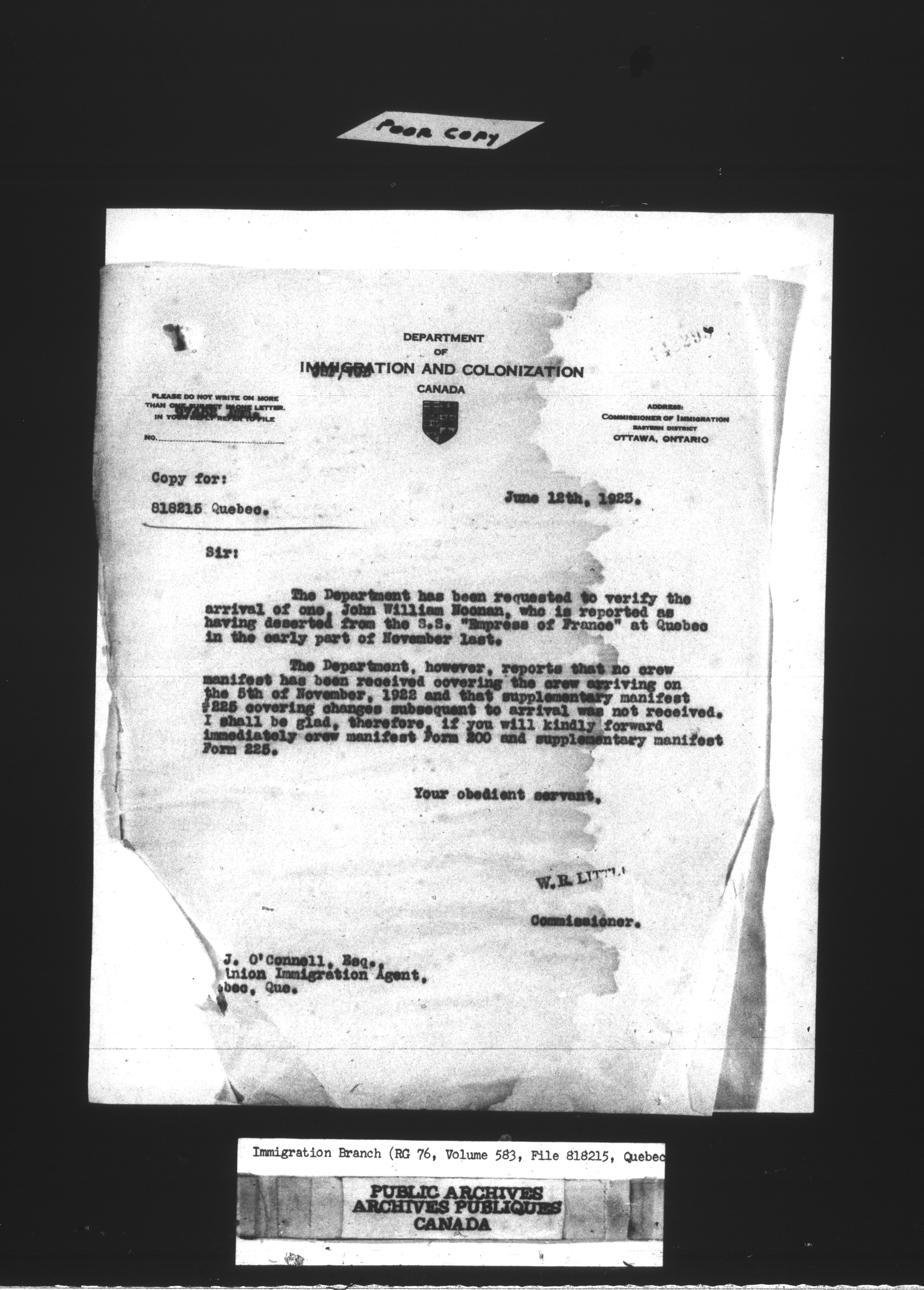 Subject, policy and case files in the First Central Registry series of the Immigration Program, 1892-1950 - 10656