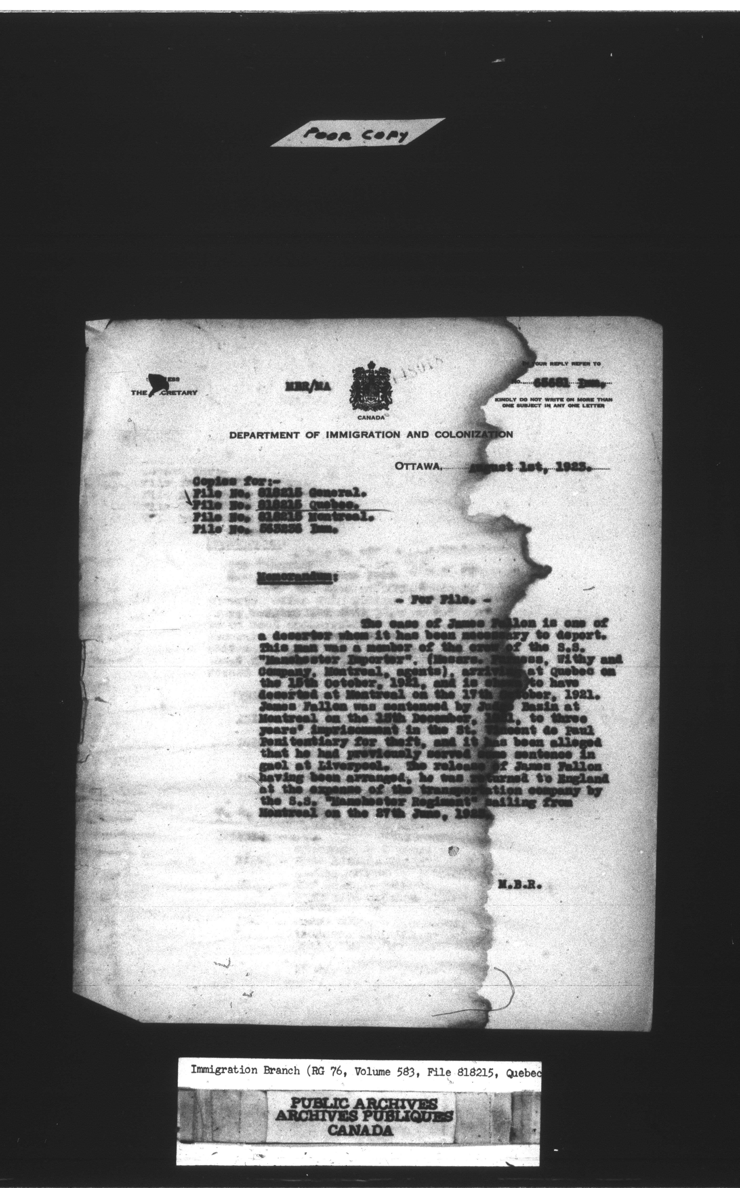 Subject, policy and case files in the First Central Registry series of the Immigration Program, 1892-1950 - 10656