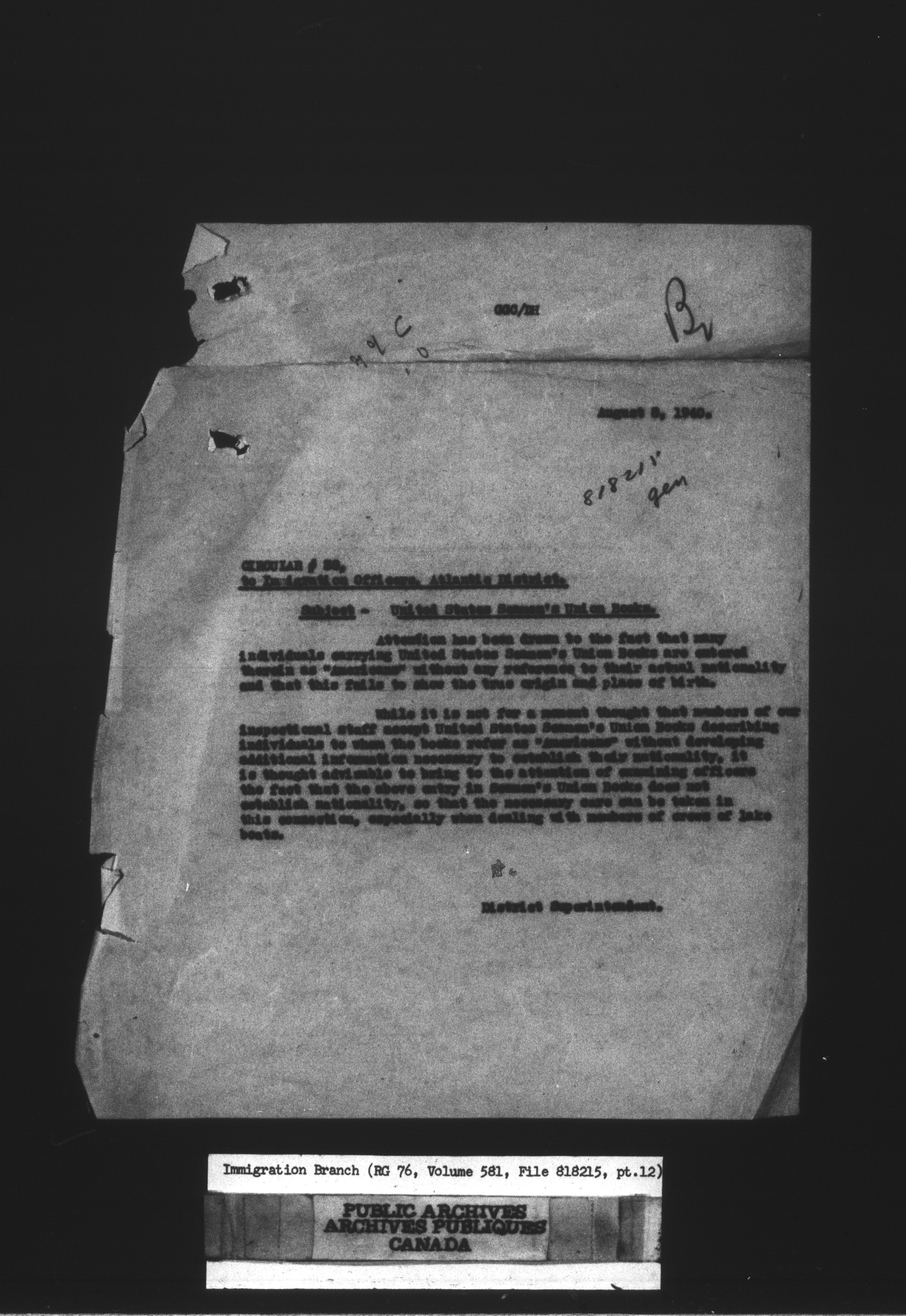Subject, policy and case files in the First Central Registry series of the Immigration Program, 1892-1950 - 10656