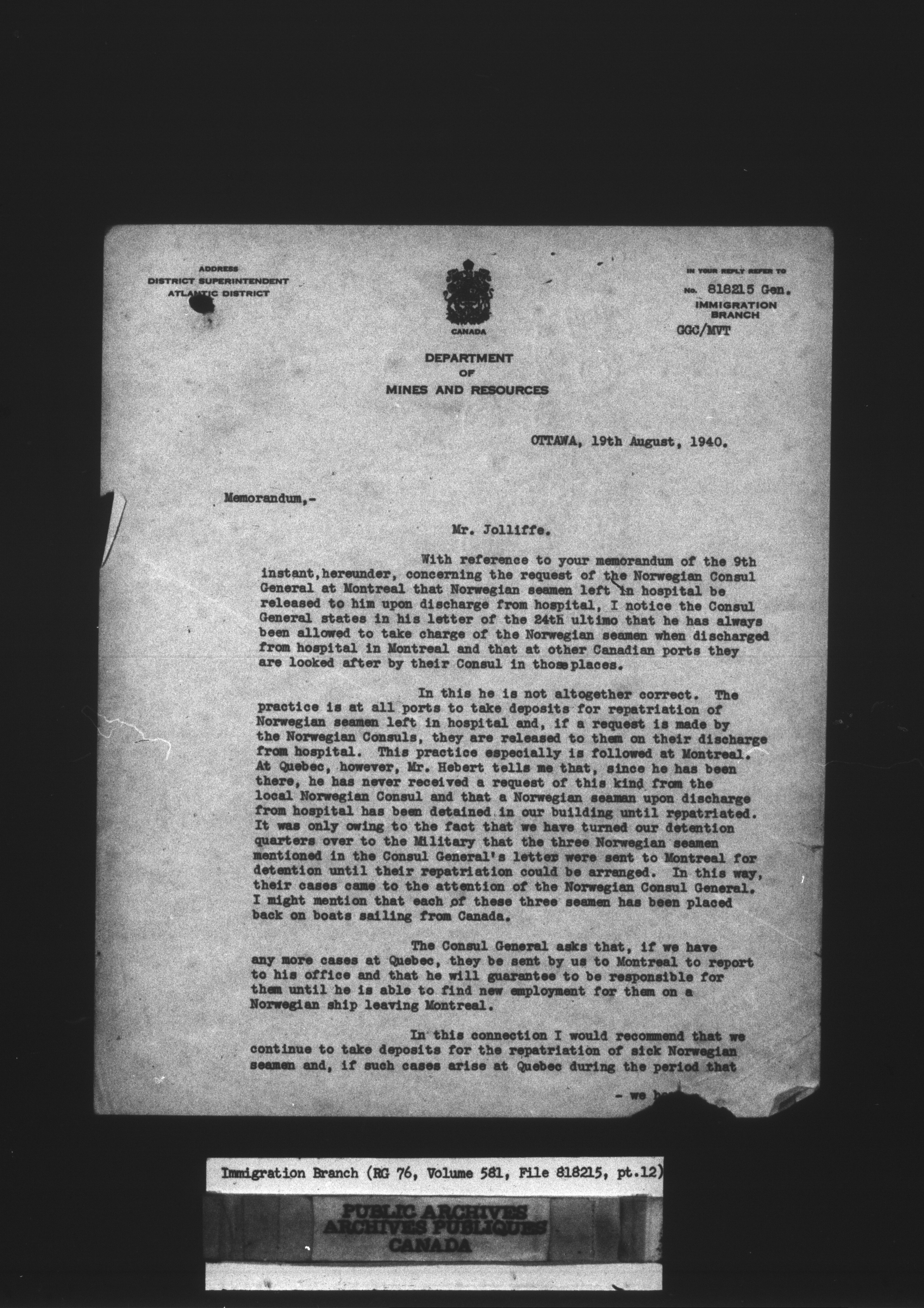 Subject, policy and case files in the First Central Registry series of the Immigration Program, 1892-1950 - 10656