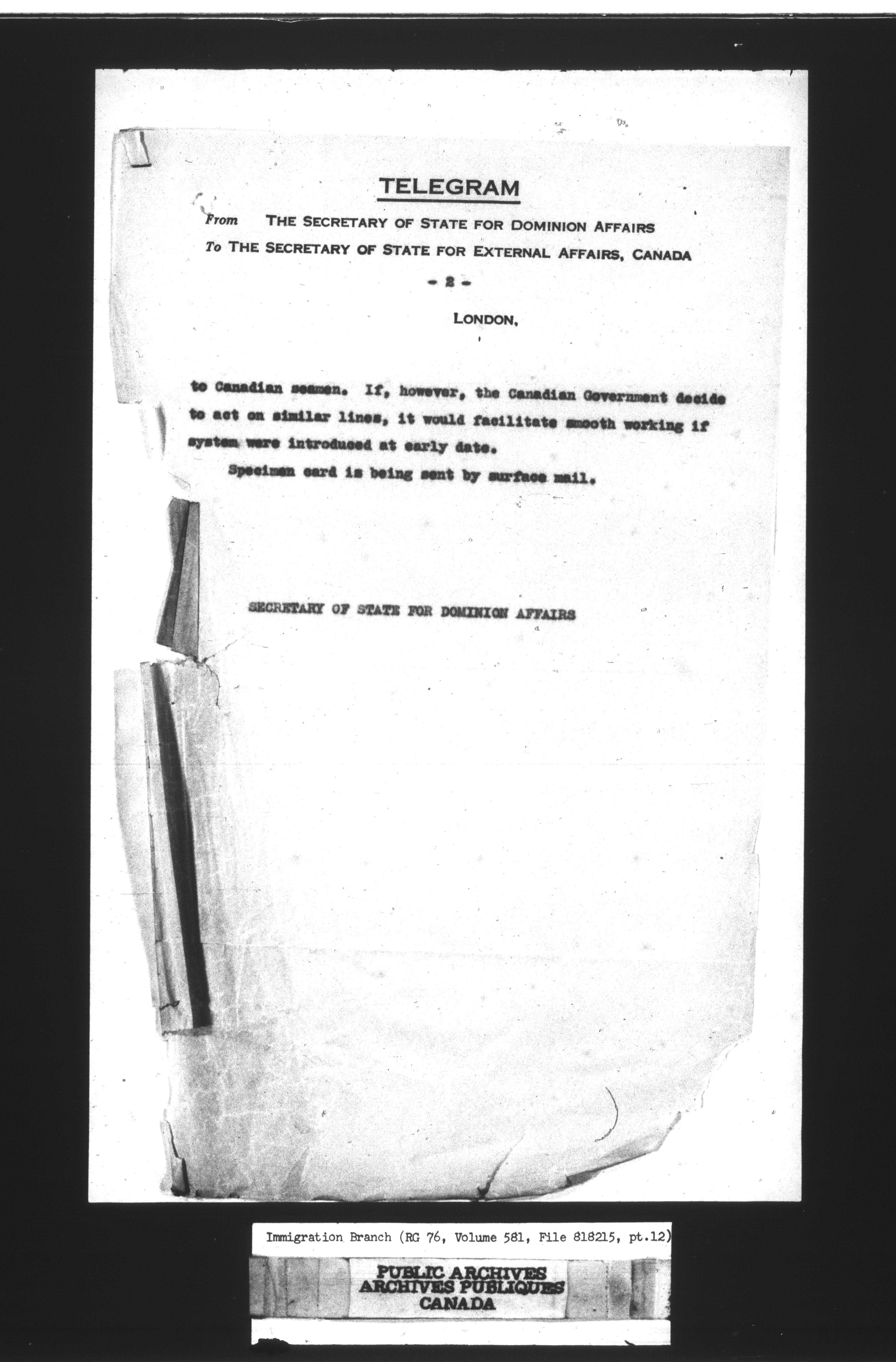 Subject, policy and case files in the First Central Registry series of the Immigration Program, 1892-1950 - 10656