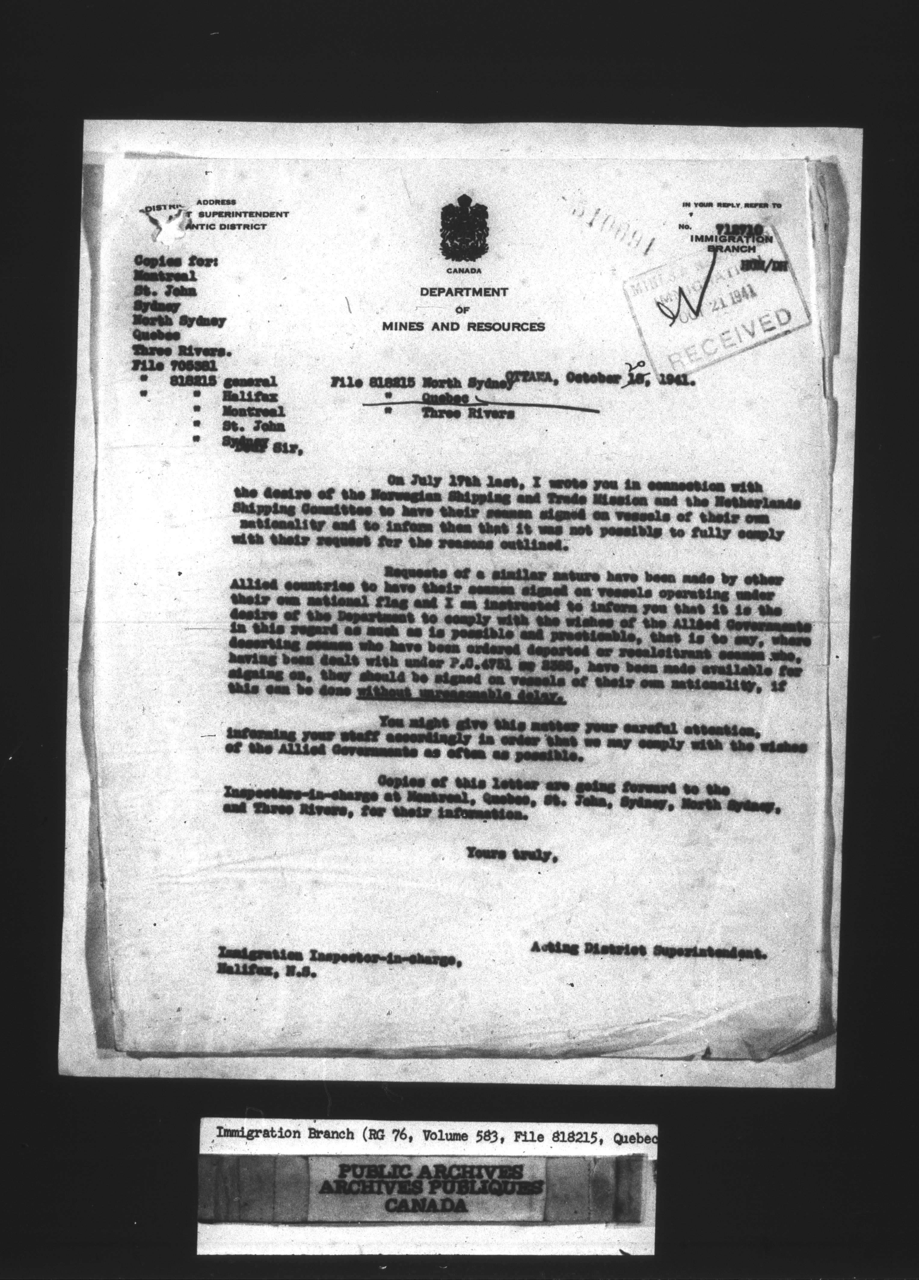Subject, policy and case files in the First Central Registry series of the Immigration Program, 1892-1950 - 10657