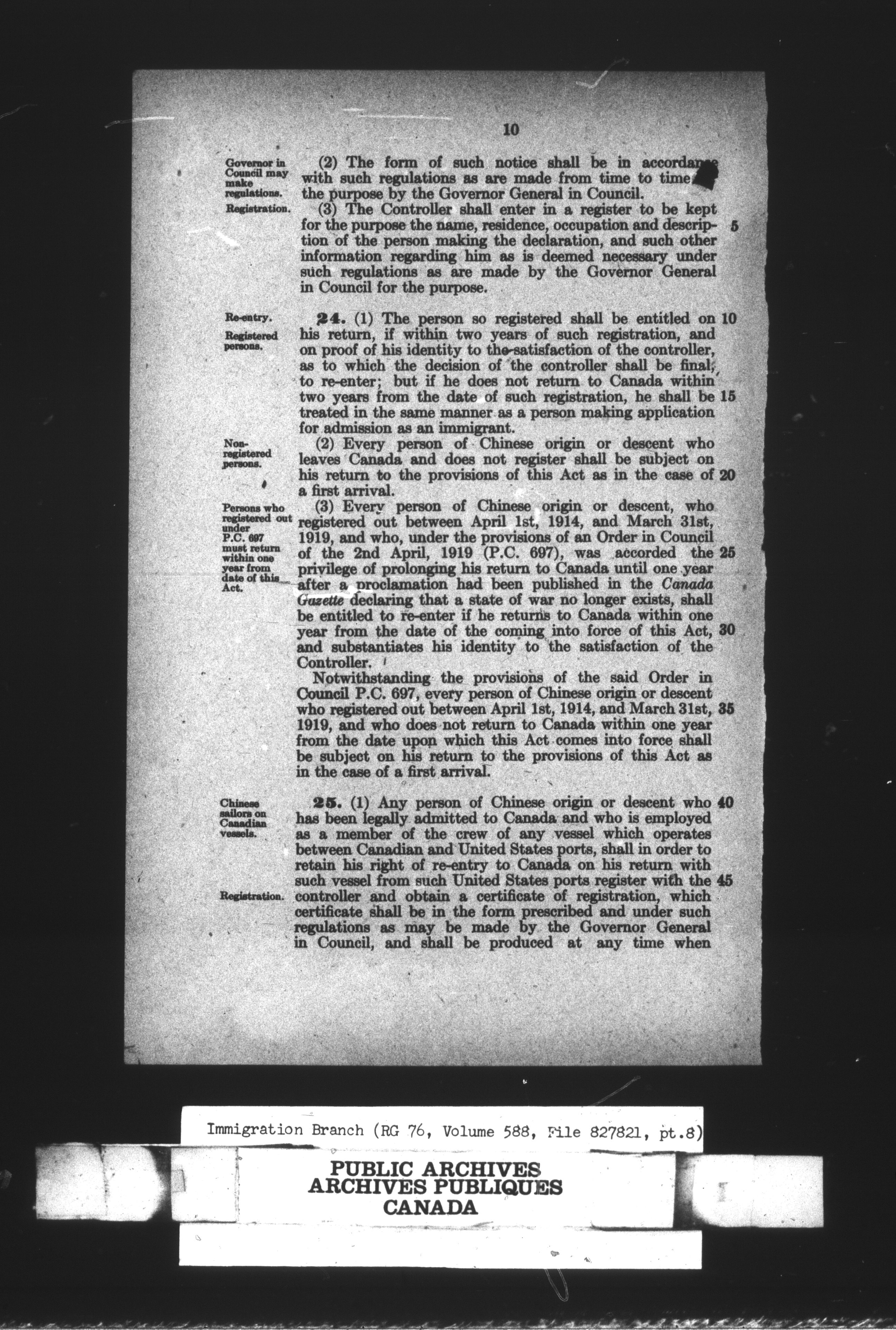 Subject, policy and case files in the First Central Registry series of the Immigration Program, 1892-1950 - 10661