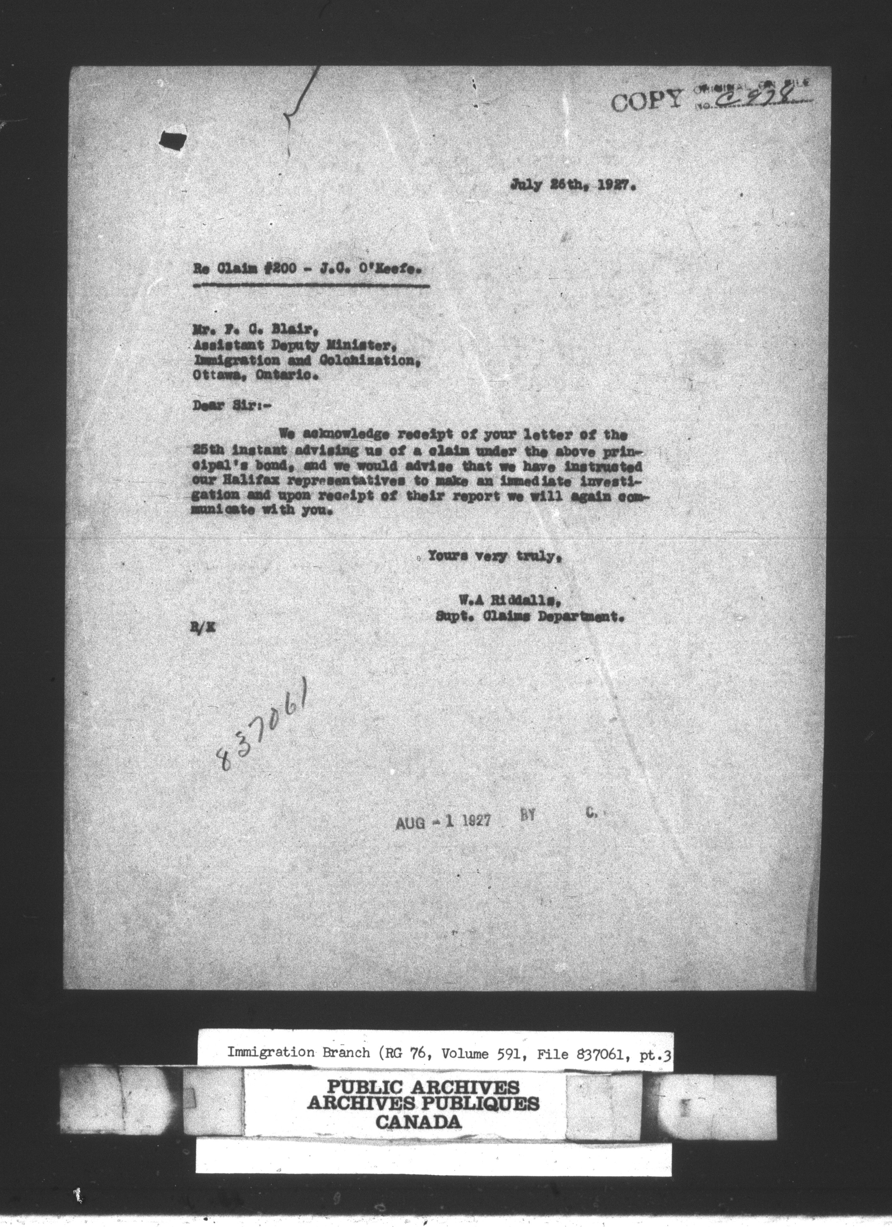 Subject, policy and case files in the First Central Registry series of the Immigration Program, 1892-1950 - 10663