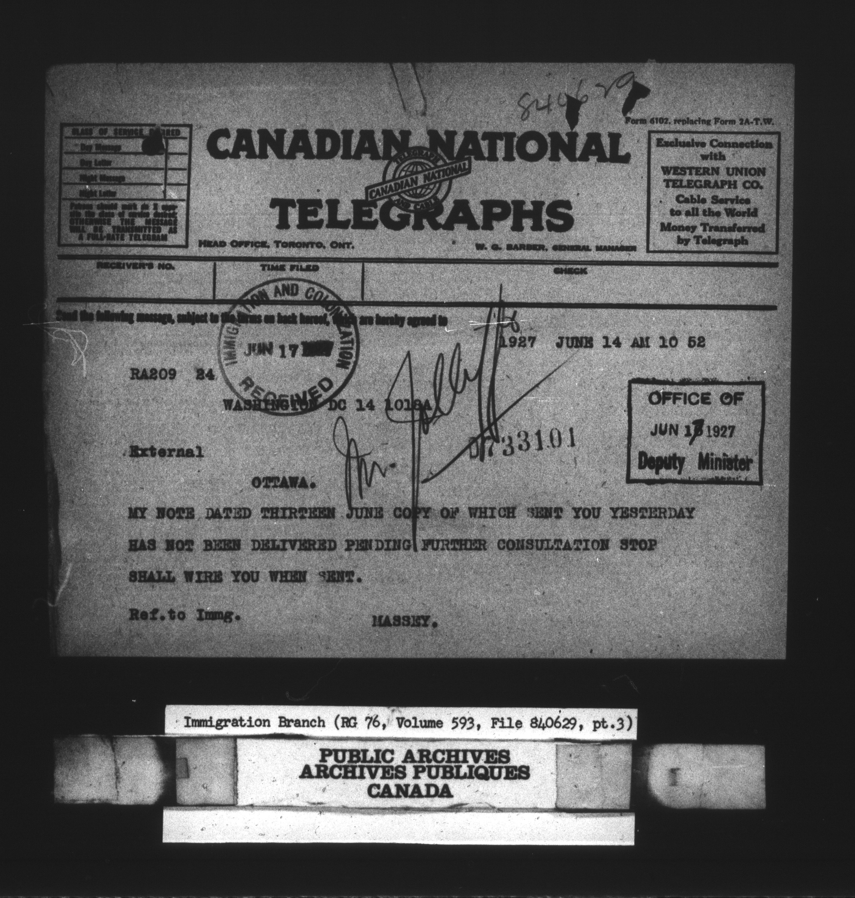 Subject, policy and case files in the First Central Registry series of the Immigration Program, 1892-1950 - 10664
