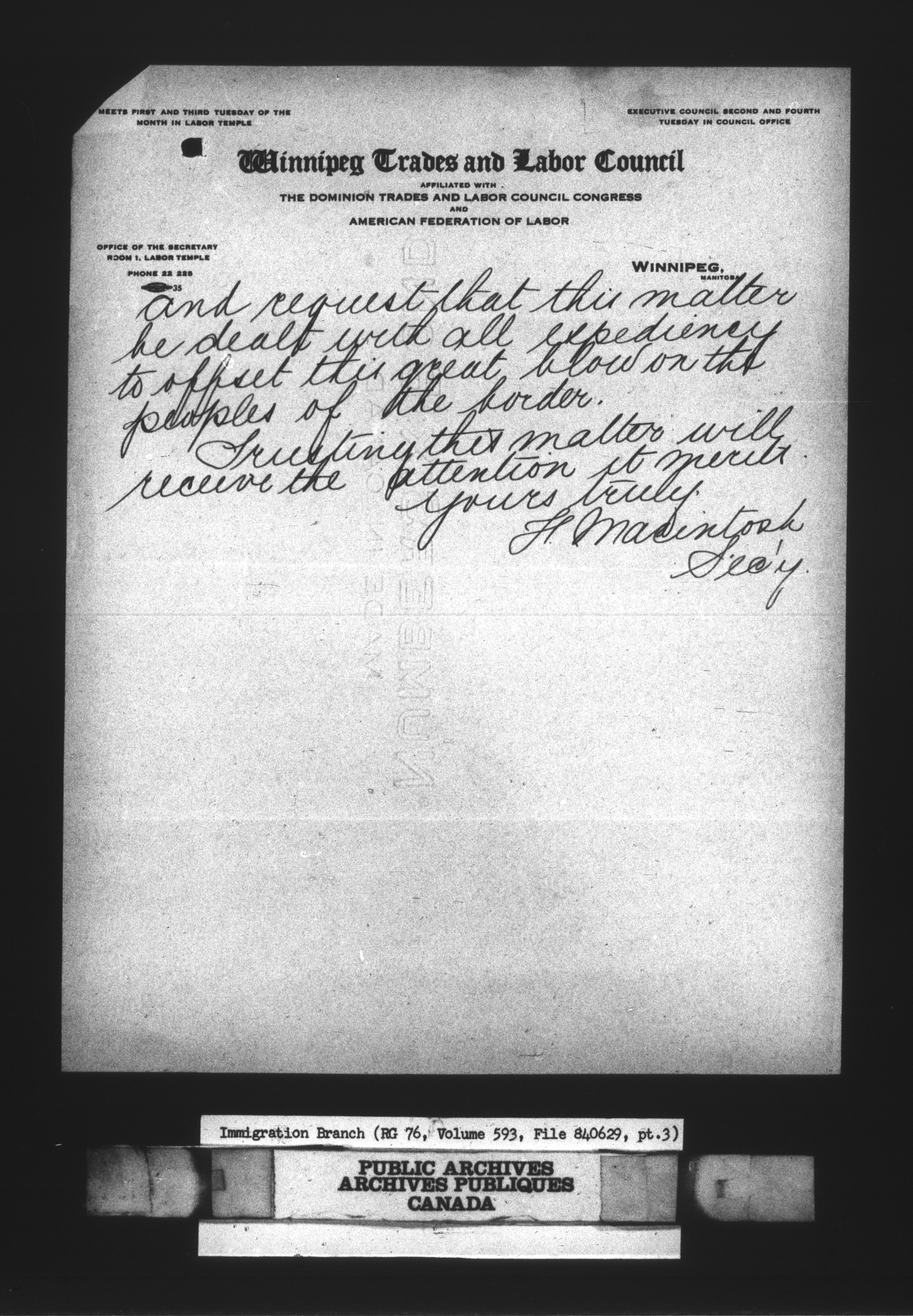 Subject, policy and case files in the First Central Registry series of the Immigration Program, 1892-1950 - 10664
