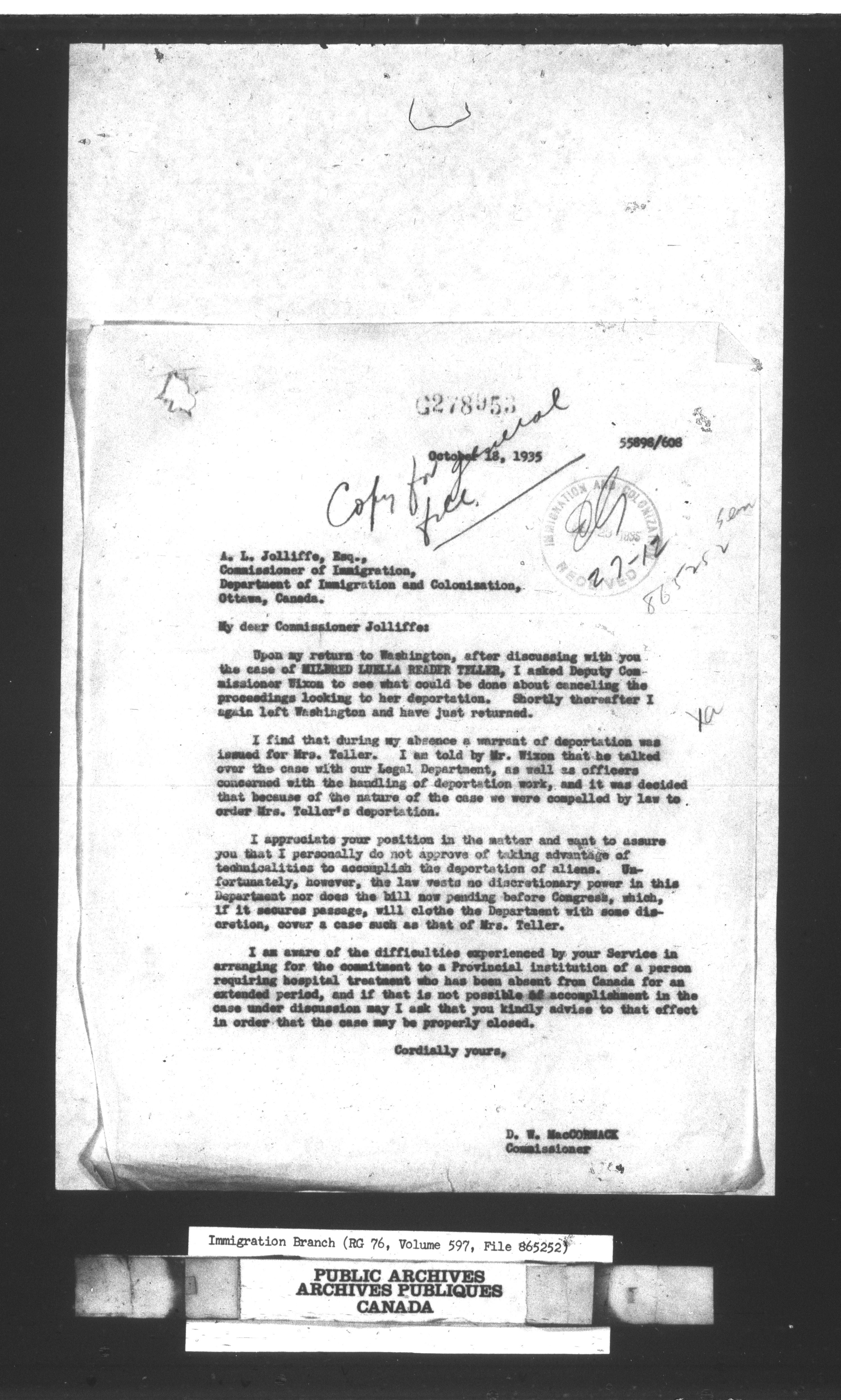 Subject, policy and case files in the First Central Registry series of the Immigration Program, 1892-1950 - 10667