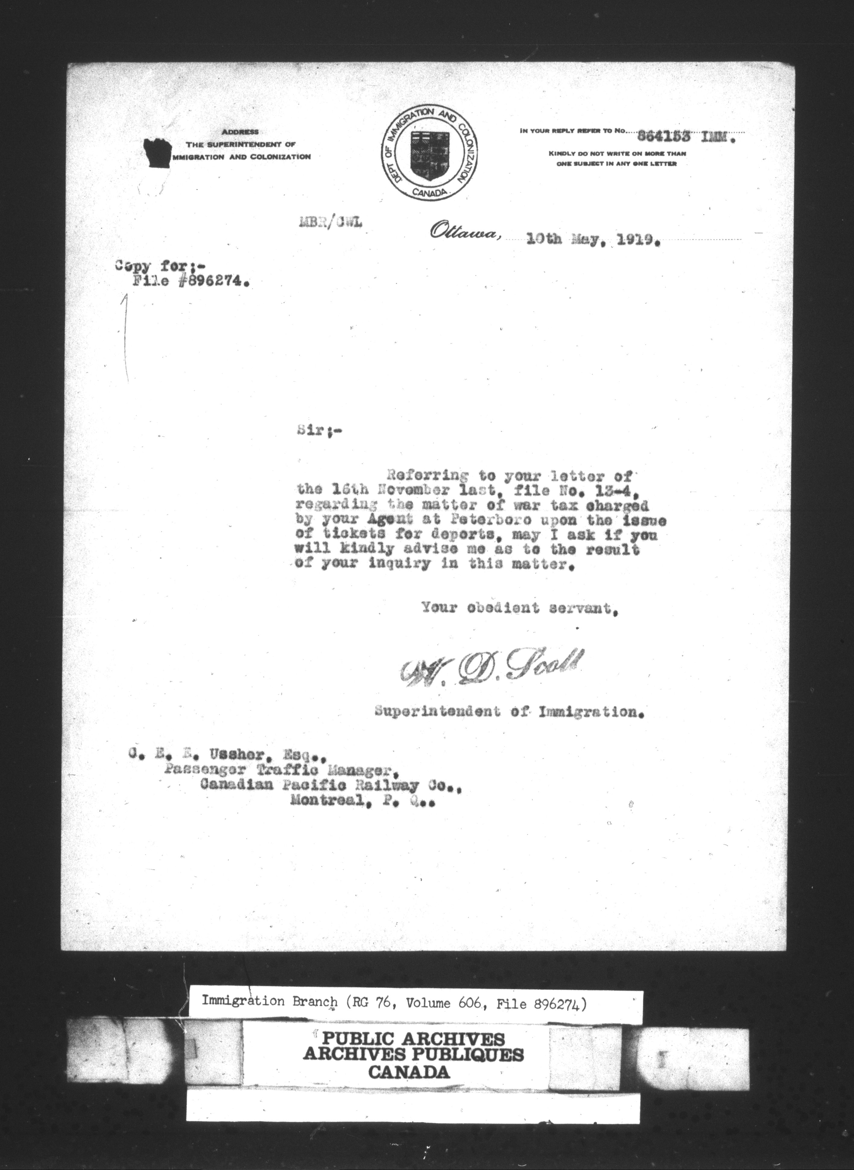 Subject, policy and case files in the First Central Registry series of the Immigration Program, 1892-1950 - 10673