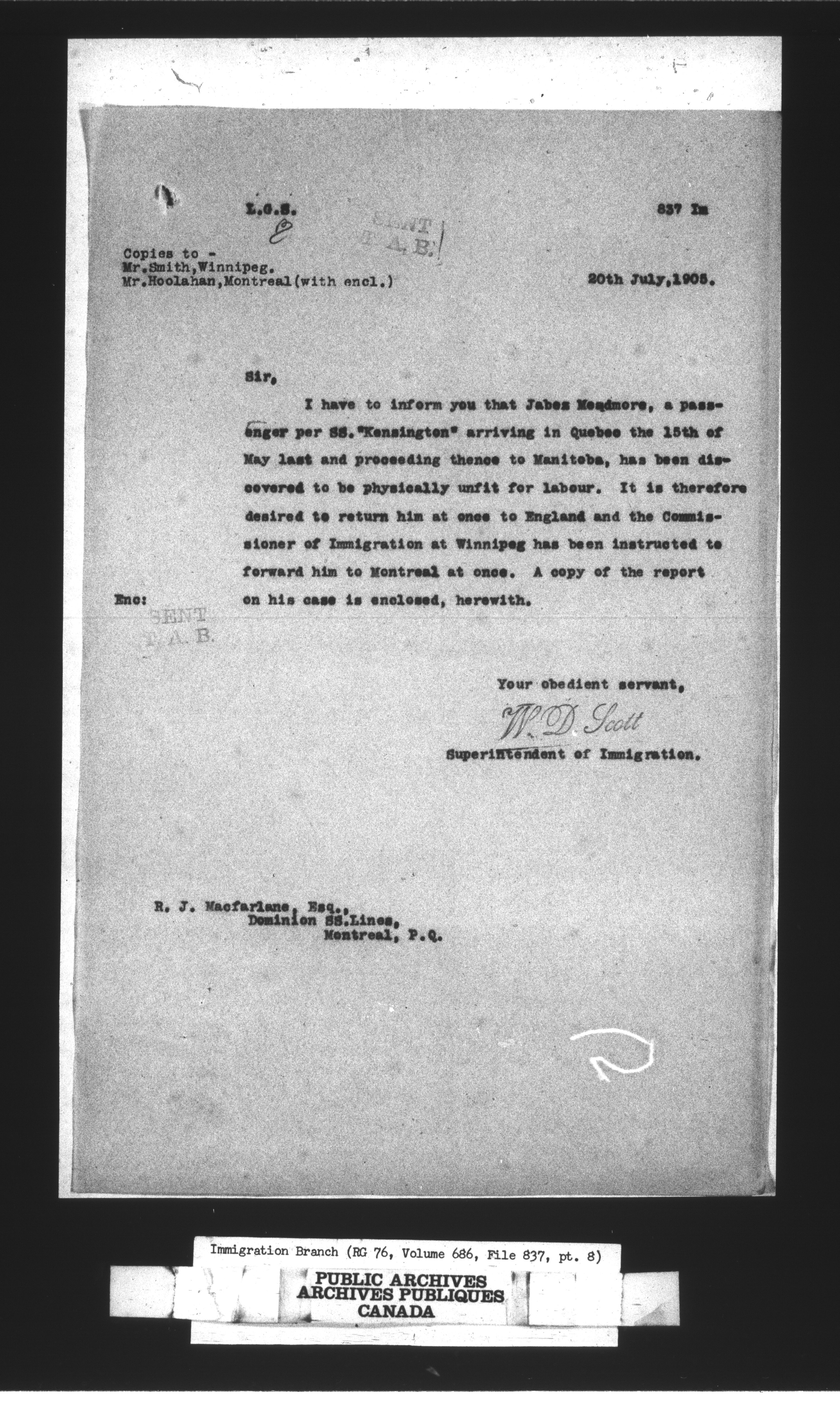 Subject, policy and case files in the First Central Registry series of the Immigration Program, 1892-1950 - 10684