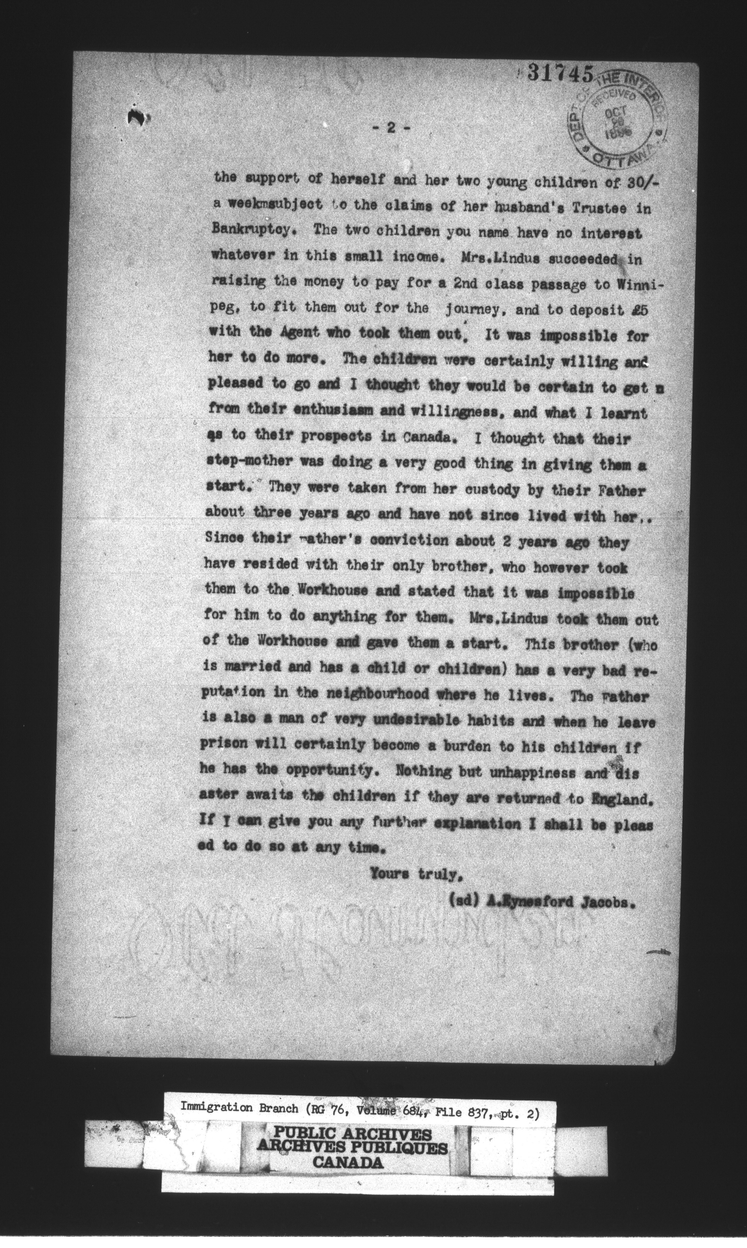 Subject, policy and case files in the First Central Registry series of the Immigration Program, 1892-1950 - 10684