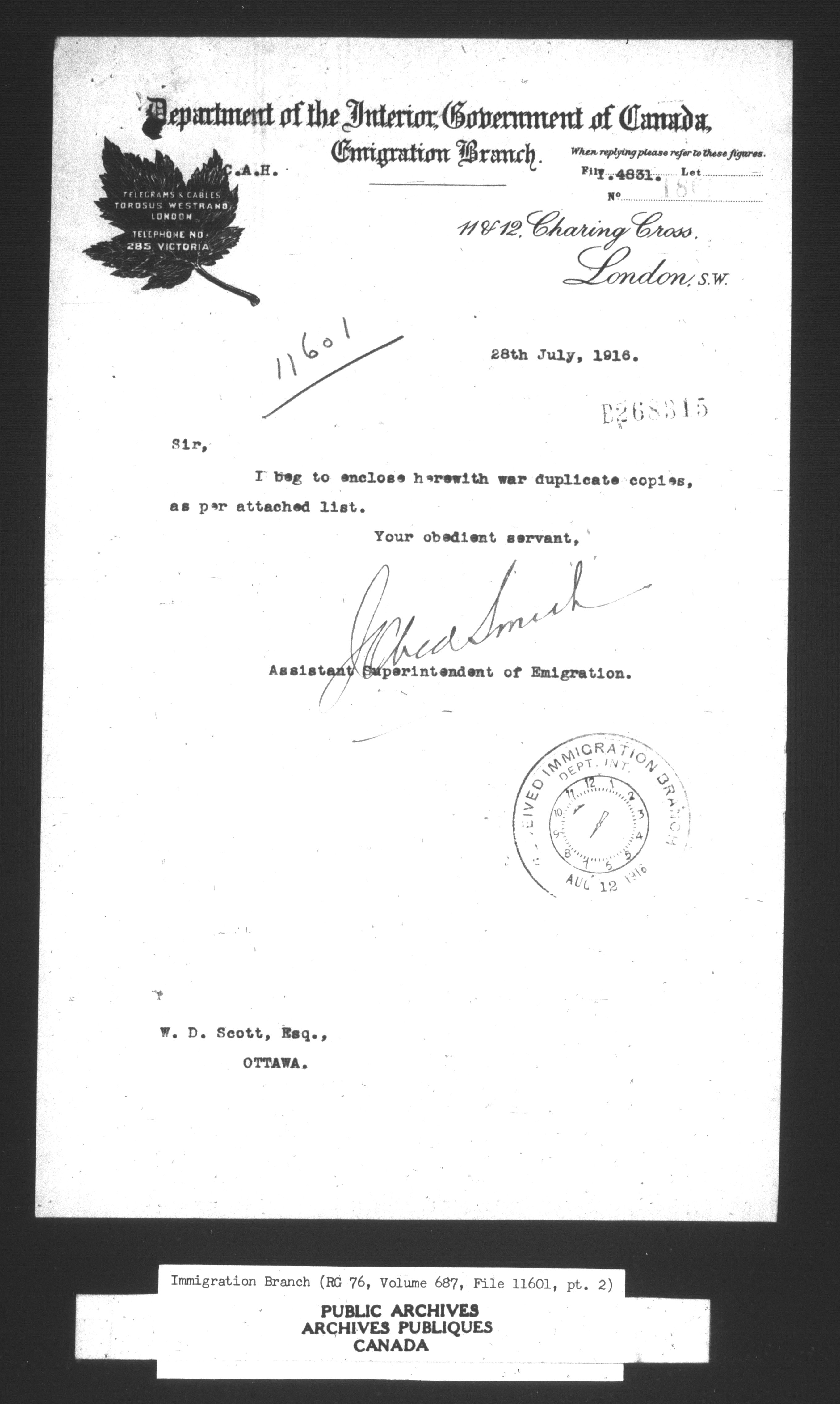 Subject, policy and case files in the First Central Registry series of the Immigration Program, 1892-1950 - 10685