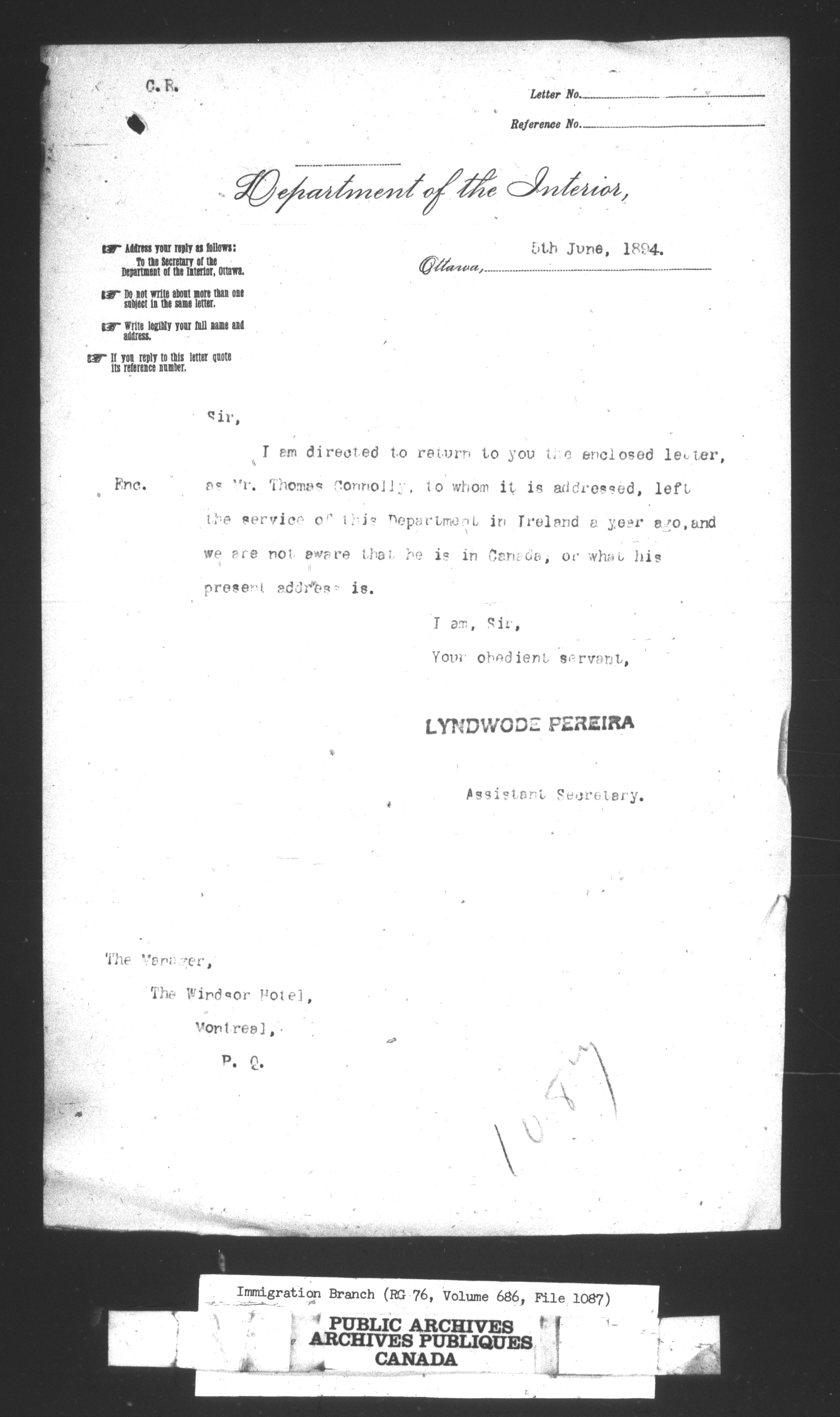 Subject, policy and case files in the First Central Registry series of the Immigration Program, 1892-1950 - 10685