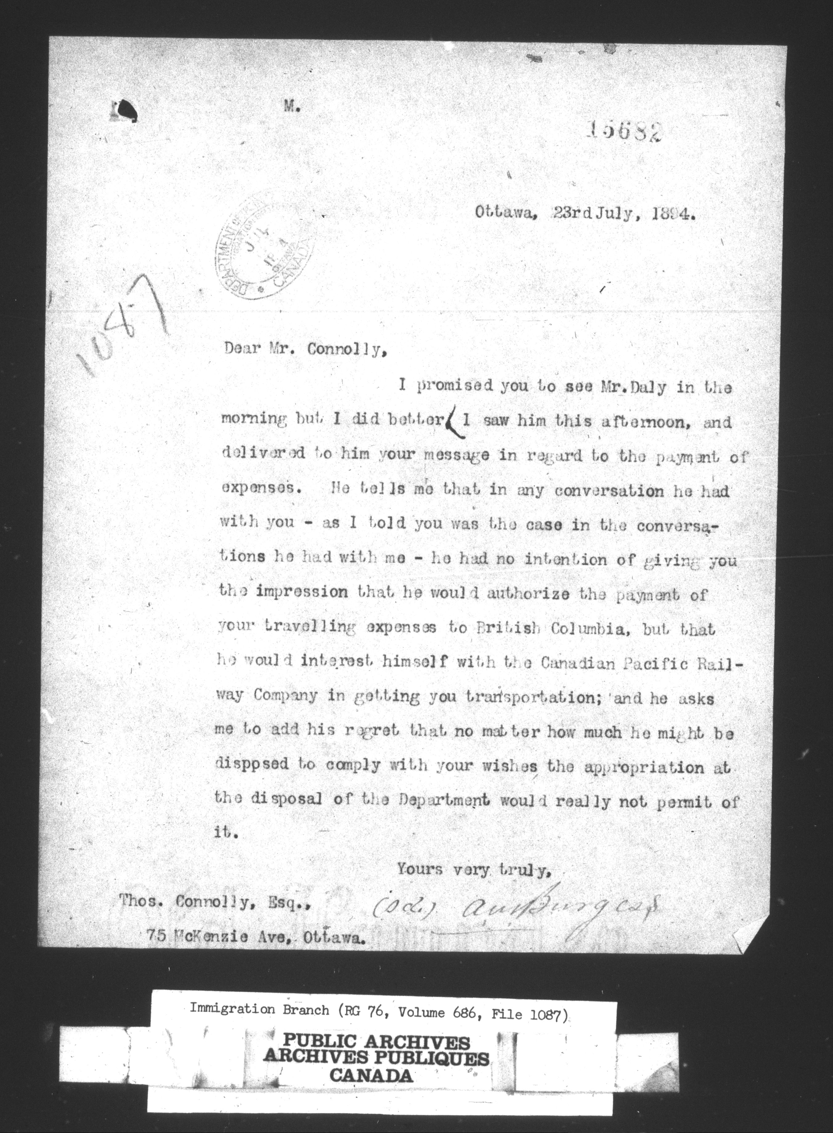 Subject, policy and case files in the First Central Registry series of the Immigration Program, 1892-1950 - 10685