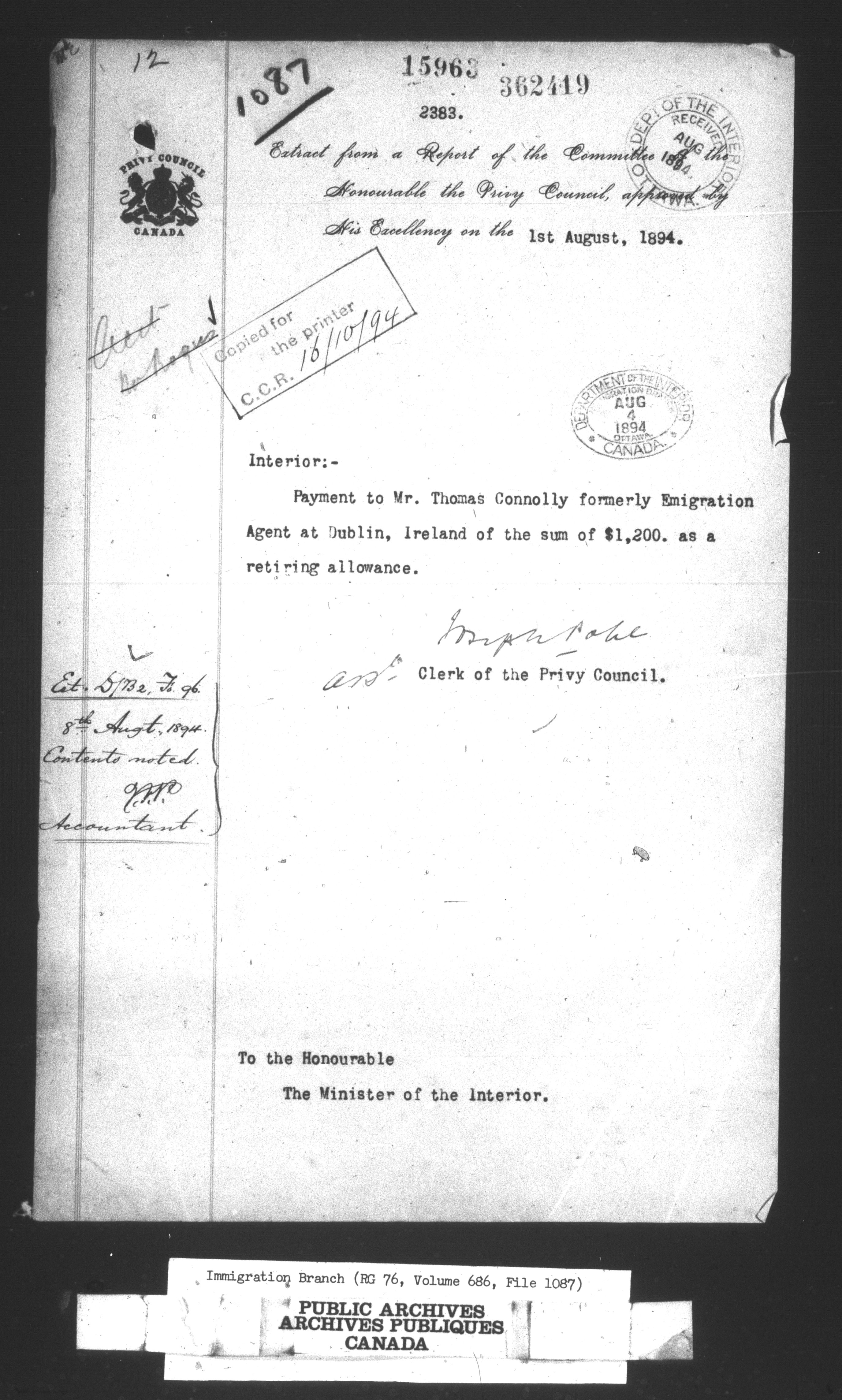 Subject, policy and case files in the First Central Registry series of the Immigration Program, 1892-1950 - 10685