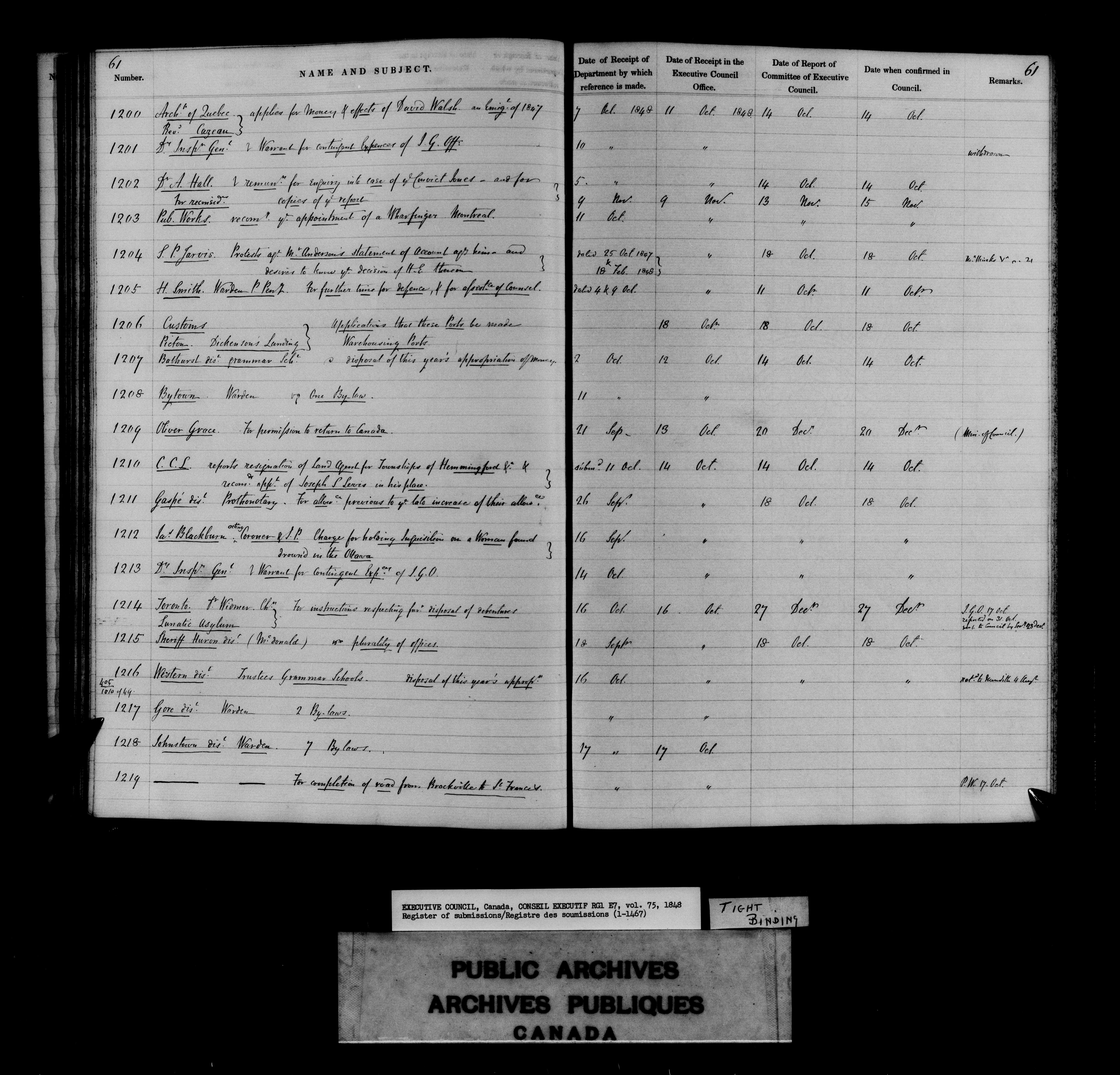 State submissions to the Executive Council [Province of Canada], 1841-1867: indexes and registers : C-10691