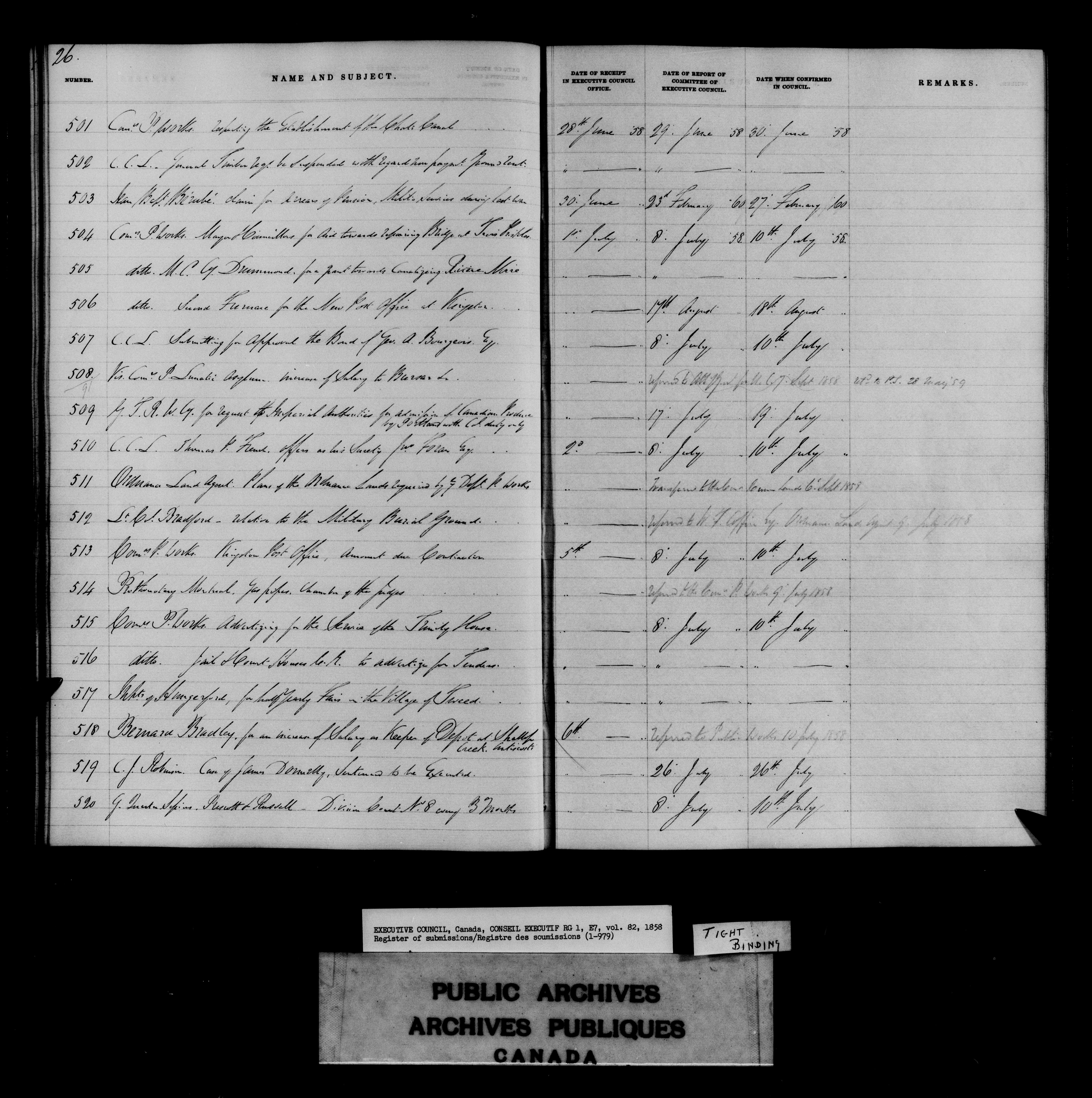 State submissions to the Executive Council [Province of Canada], 1841-1867: indexes and registers : C-10692