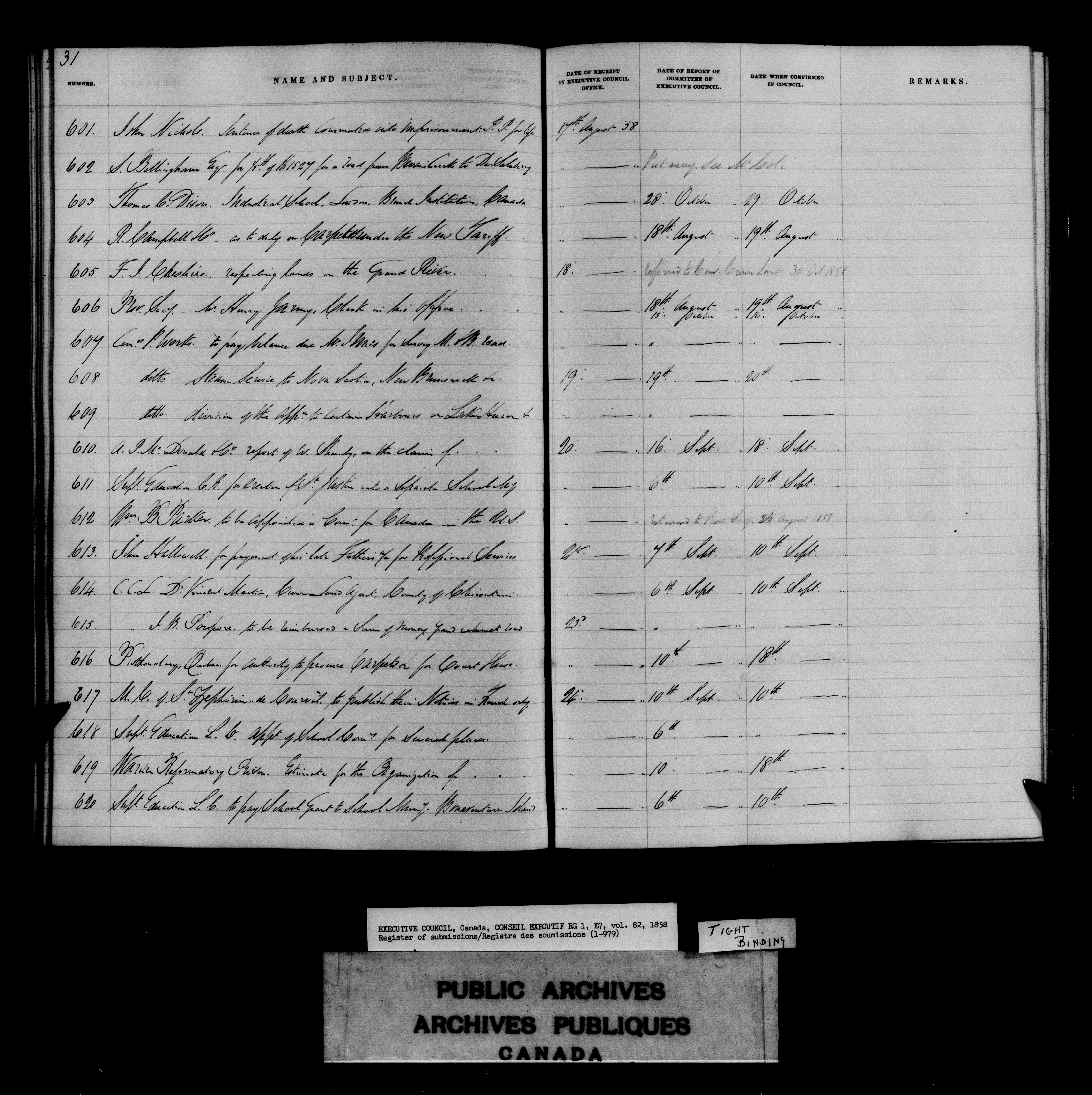 State submissions to the Executive Council [Province of Canada], 1841-1867: indexes and registers : C-10692