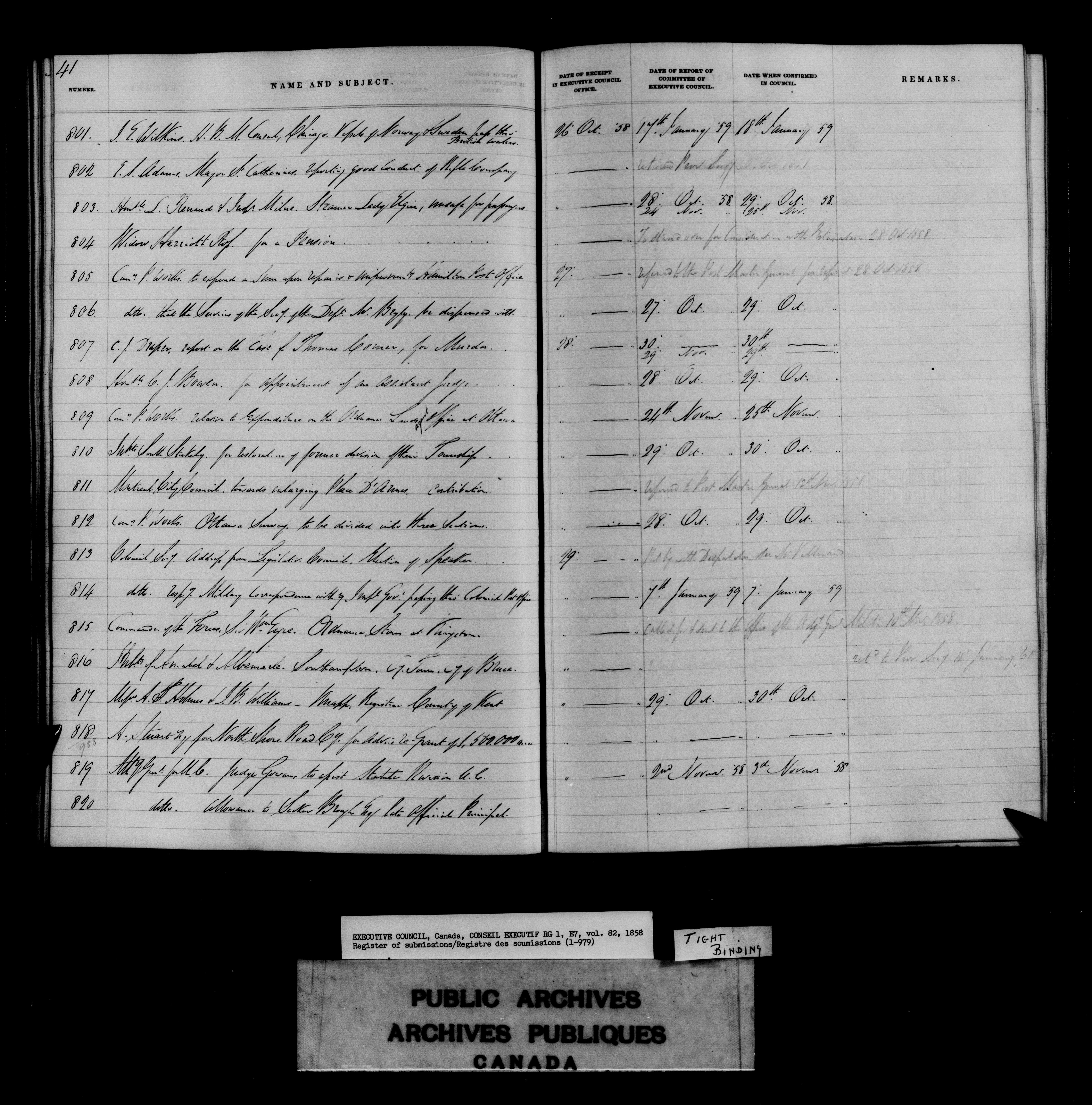 State submissions to the Executive Council [Province of Canada], 1841-1867: indexes and registers : C-10692